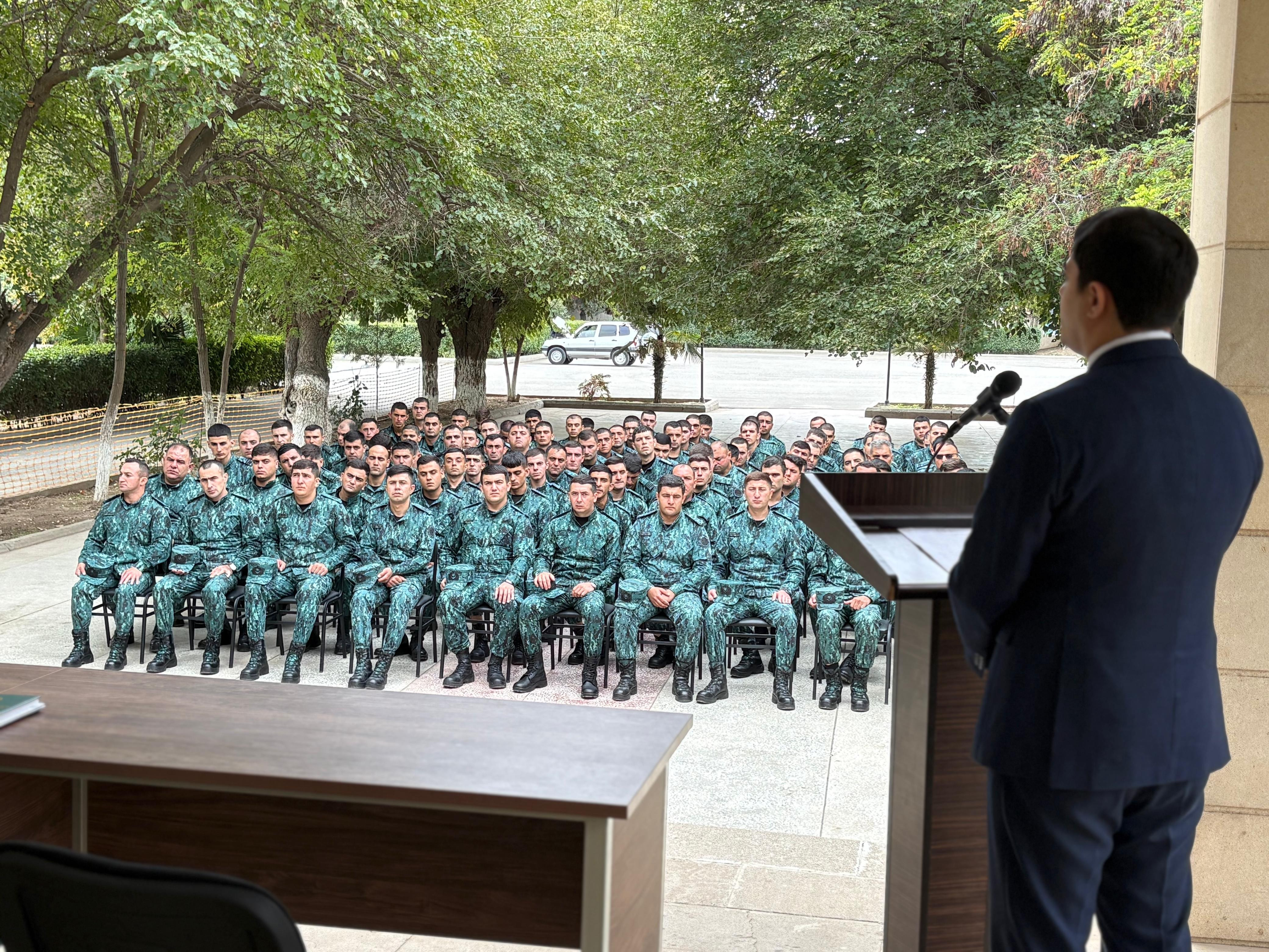 Tədbirin davamında hərbi xidmət əleyhinə olan cinayətlər barədə vacib məsələlər şəxsi heyətin diqqətinə çatdırılmış, hərbi xidmətin təkcə fiziki bacarıq və fədakarlıq deyil, eyni zamanda ciddi hüquqi məsuliyyət tələb edən vəzifə olduğu, əmrə tabe olmama kimi hərəkətlərin yalnız fərdi məsuliyyət yaratmadığı, eyni zamanda xidmət kollektivinə və dövlətin müdafiə qabiliyyətinə ciddi ziyan vurduğu bildirilmiş, bu cür hüquq pozuntularına qarşı mübarizədə birgə səyin vacibliyi xüsusi qeyd edilmişdir.
