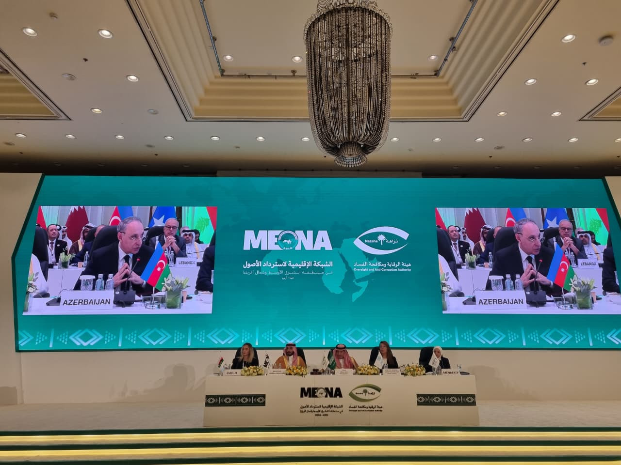 Baş prokuror Kamran Əliyev Səudiyyə Ərəbistanı Krallığının Nəzarət və Korrupsiyaya Qarşı Mübarizə qurumunun (Nazaha) dəstəyi ilə təşkil edilmiş Yaxın Şərq və Şimali Afrika regionu (MENA) üzrə cinayət yolu ilə əldə edilmiş əmlakın bərpası sahəsində fəaliyyət göstərən qurumların Şəbəkəsinin təsis konfransında iştirak edib.