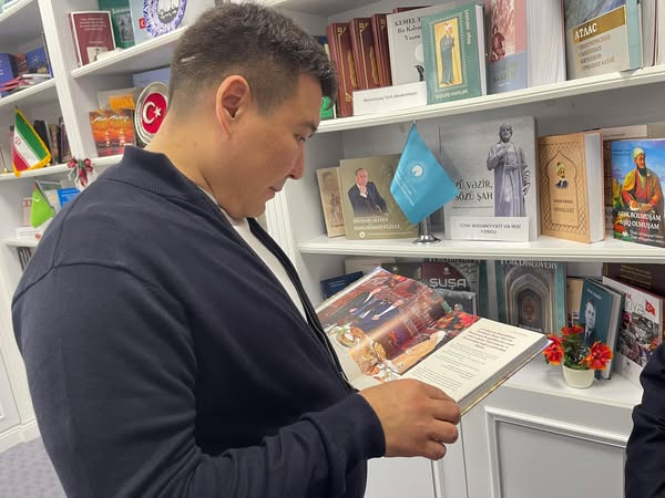 K.Jarov təmsil etdiyi kitabxananın fəaliyyəti, Qazaxıstan kitabxana-informasiya işinin təşkili və tətbiq olunan yeni texnologiyalar barədə danışıb. O, qazax şairi və mütəfəkkiri Abay Kunanbayevə həsr olunmuş “Абай. Даналығы Мудрость Wisdom” adlı kitabı direktora hədiyyə edib.