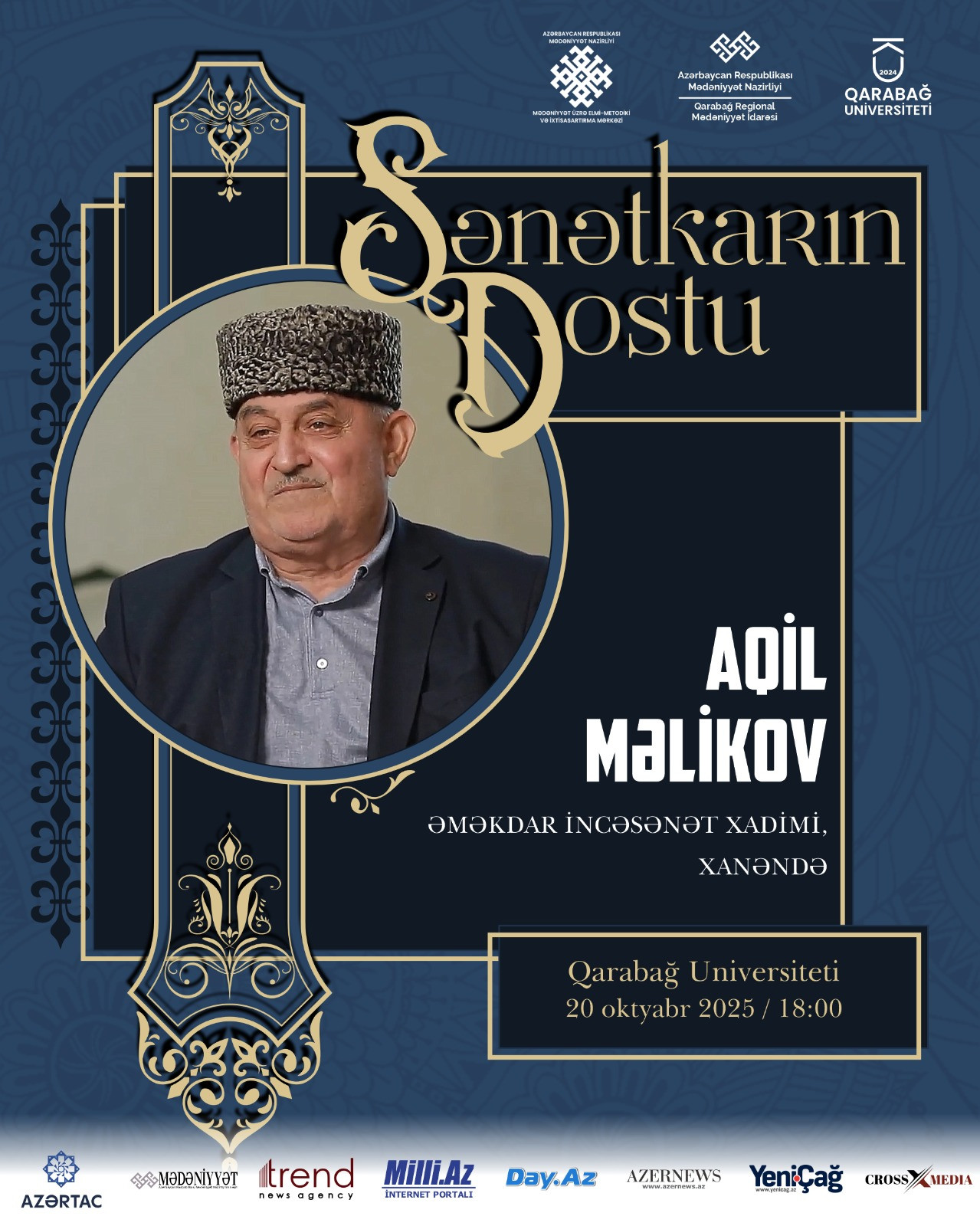 MEMİM-in “Sənətkarın dostu” layihəsi çərçivəsində oktyabrın 20-də Qarabağ Universiteti İncəsənət fakültəsinin dəstəyi ilə xanəndə, pedaqoq, Əməkdar incəsənət xadimi Aqil Məlikovla görüş, oktyabrın 21-də isə “Azərbaycan mədəniyyətində Üzeyir Hacıbəyli fenomeni” mövzusunda elmi-praktik seminar keçiriləcək. Tədbir dahi bəstəkar, Azərbaycan professional musiqisinin banisi, musiqişünas və pedaqoq Üzeyir Hacıbəylinin 140 illik yubileyi münasibətilə təşkil olunacaq.