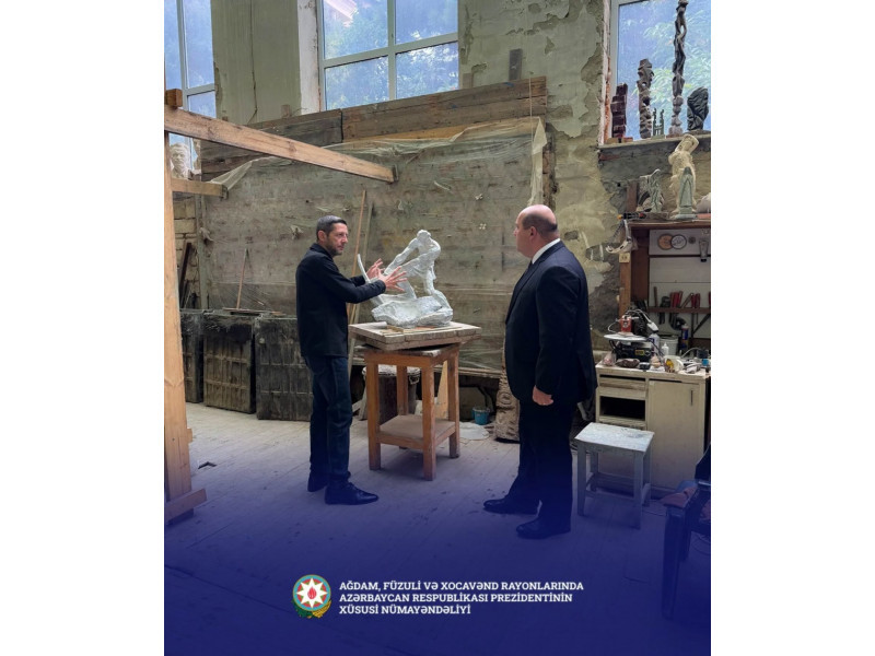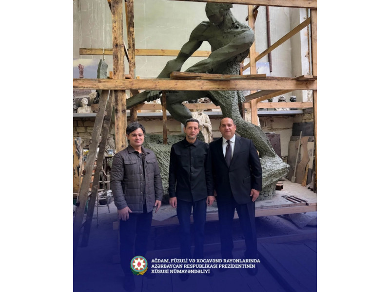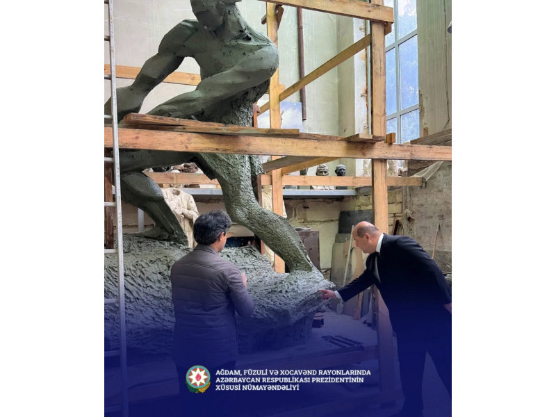 Azərbaycan Prezidentinin Ağdam, Füzuli və Xocavənd rayonları üzrə xüsusi nümayəndəsi Emin Hüseynov "Fərhadın heykəli"nin hazırlanması prosesi ilə tanış olub.