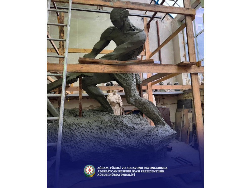 Ağdam şəhərinin mərkəzi parkında yüksələcək Fərhad heykəlinin inşaatı prosesinə baxış keçirilib.