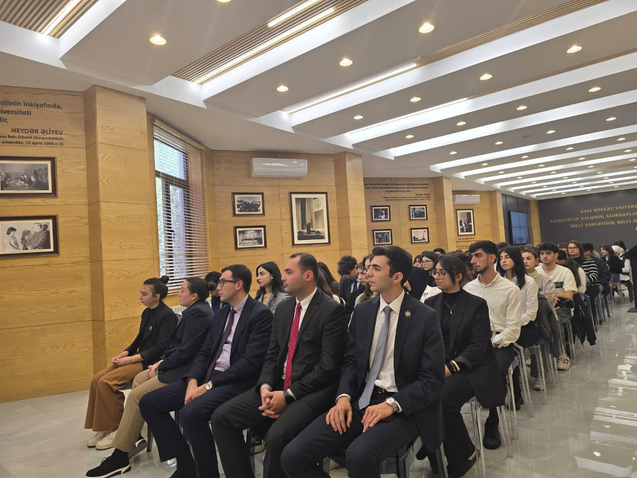Çıxışlardan sonra tələbələrin çoxsaylı sualları cavablandırılıb, xatirə şəkli çəkdirilib.