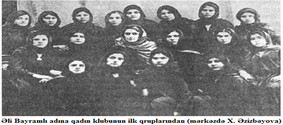 Əli Bayramlı adına qadın klubu 1 il ərzində (1920-1921) 20 min qadını öz ətrafında toplamış və 75 aktivist hazırlamışdı. 1926-1932-ci illərdə 150 min azərbaycanlı qadın kluba cəlb olunmuşdu [41, 56]. Artıq, 1927-ci ildə Azərbaycanda 4 min qadın çalışırdı (ümumi işləyənlərin 4.5%-i). 1930-cu ildə kolxozlarda işləyən qadınların ümumi sayı 37%, 1933-cü ildə respublika xalq təsərrüfatında çalışan qadınların ümumi sayı 24% idi. Qadınlar dövlət işlərinə və siyasi işlərə cəlb olundu.