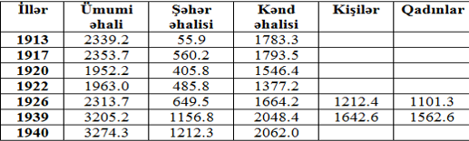 Cədvəl 2. 1913-1940-cı illərdə Azərbaycan əhalisinin sayı (min nəfər ilə)
