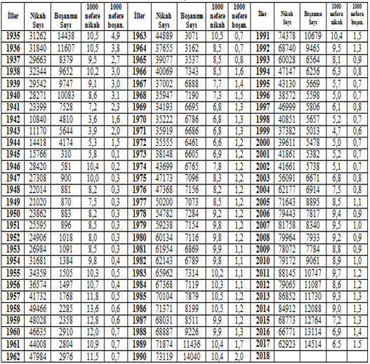 20-30-cu illərdə postsovet məkanında, həmçinin, Azərbaycan ərazisində feodalizmdən sosializm sisteminə keçidlə bağlı baş verən fundamental dəyişikliklər, şüurları və həyat tərzlərini sürətlə dəyişməyə vadar edən çox ağrılı proseslər idi. Bunu, boşanma səviyyəsinin ən yüksək olduğu 1935-1943 illərin statistikası da təsdiq edir. Biz, bu illərdən əvvəlki statistikaya malik olmadığımız üçün, 1935-1943 illərin statistikasına əsaslanırıq. Lakin, əvvəlki illərdən bu proseslərin başladığını və 30-cu illərdə yüksək həddə çatdığını söyləyə bilərik.