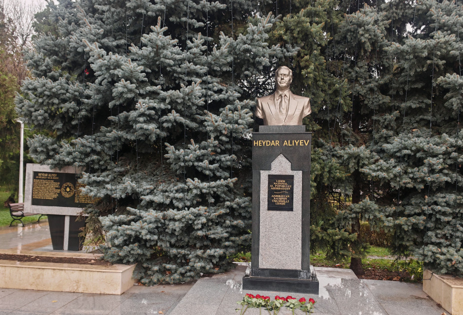 Crossmedia.az xəbər verir ki, tədbirdə Ümummilli Liderin əziz xatirəsi ehtiramla yad olunub, büstün önünə gül dəstələri düzülüb.