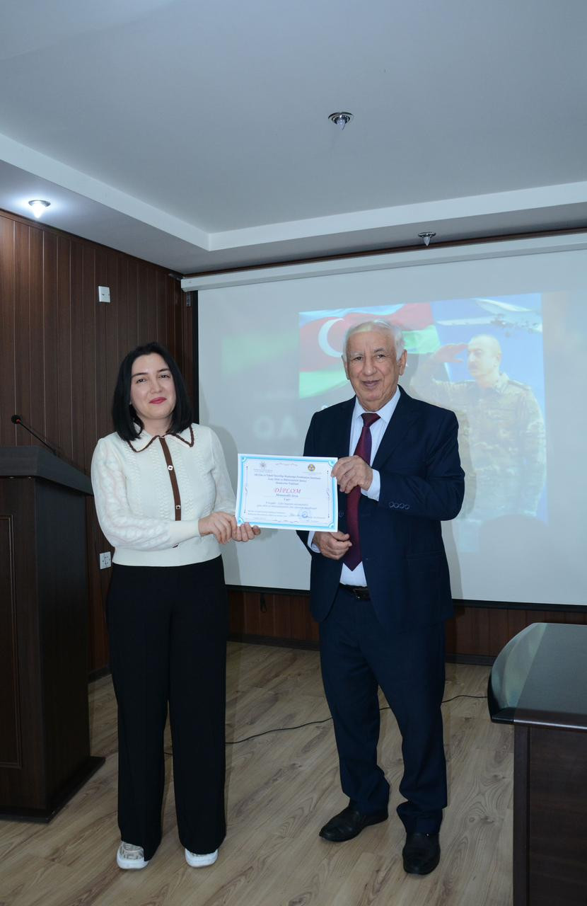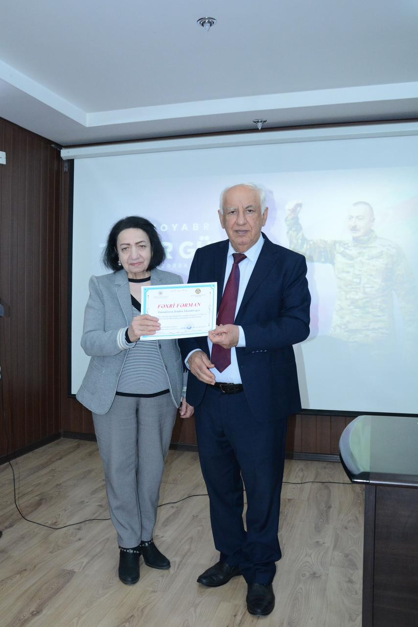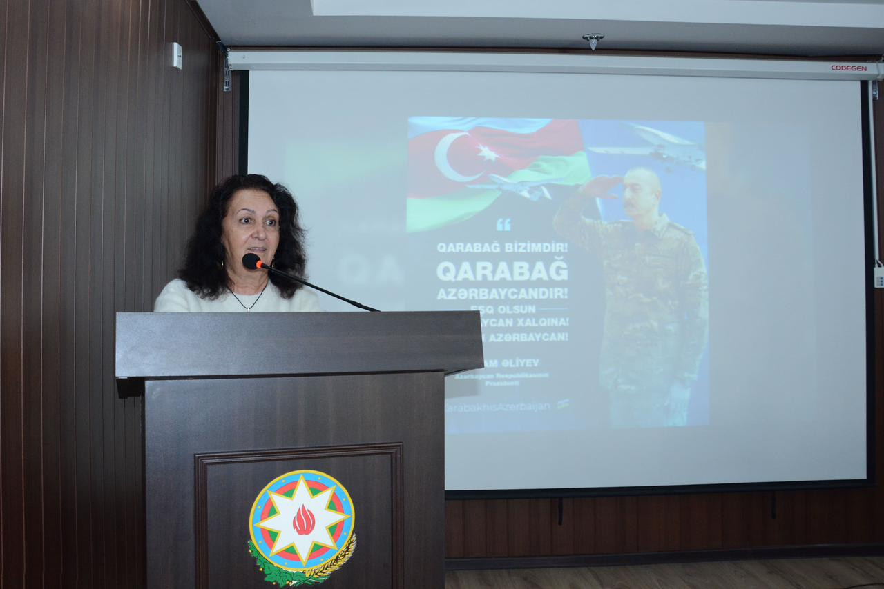 Daha sonra institutun icraçı direktoru, fizika-riyaziyyat üzrə fəlsəfə doktoru, dosent Rəvan Mehdiyeva çıxış edərək Zəfər Gününün xalqımızın yaddaşında əbədi iz buraxan tarixi hadisə olduğunu vurğulayıb. O qeyd edib ki, bu qələbə Azərbaycan xalqının iradəsinin, birliyinin və mübarizə əzminin təcəssümüdür.