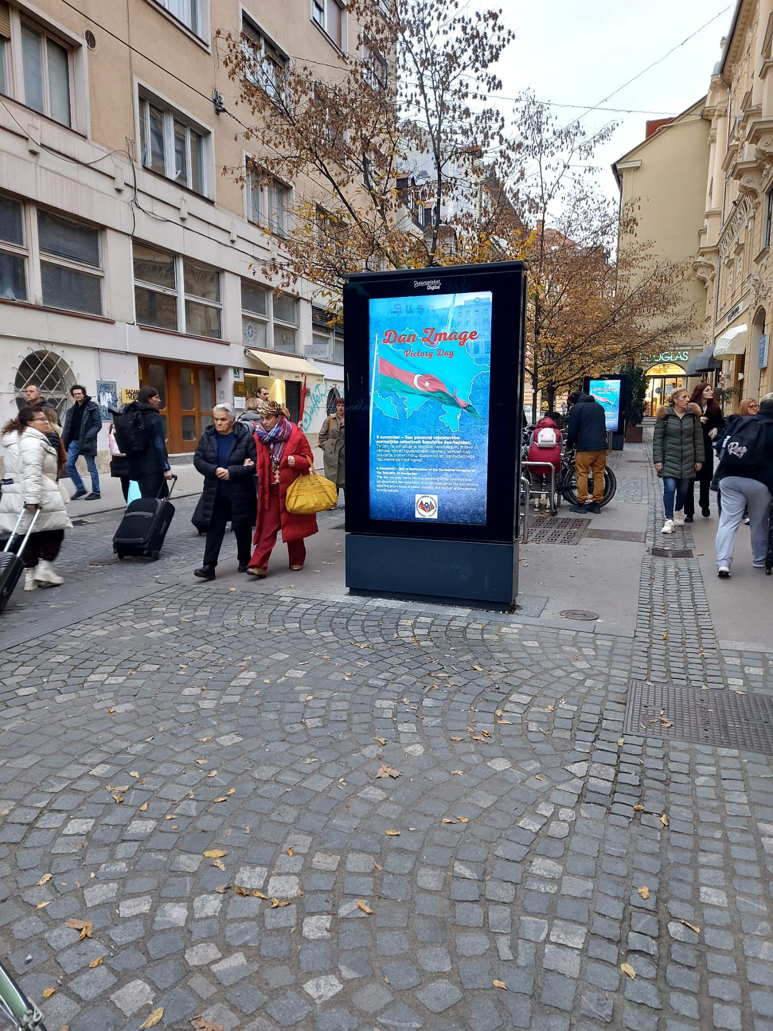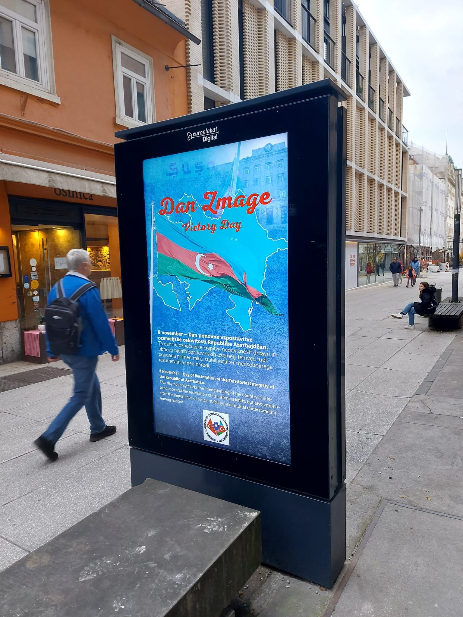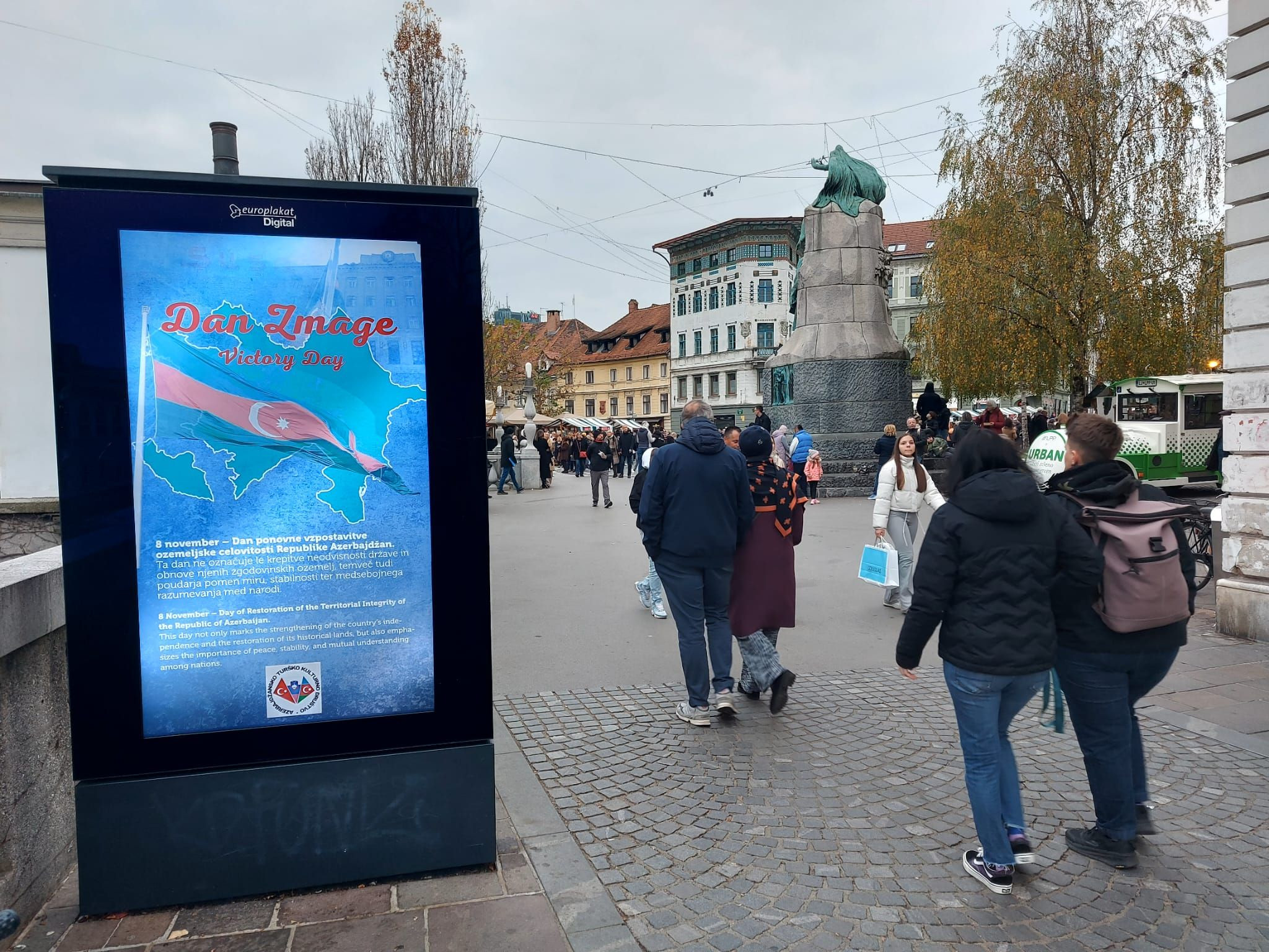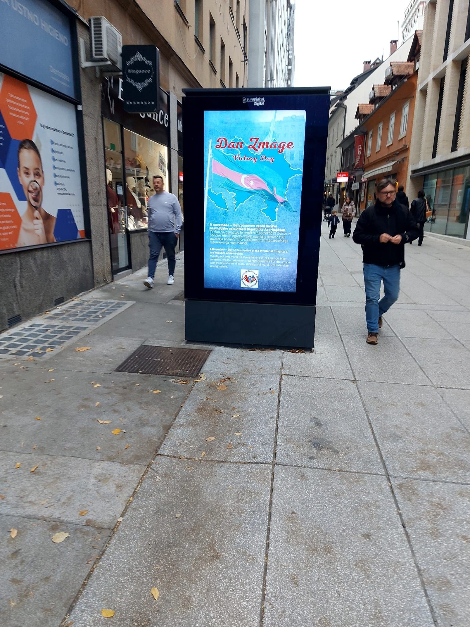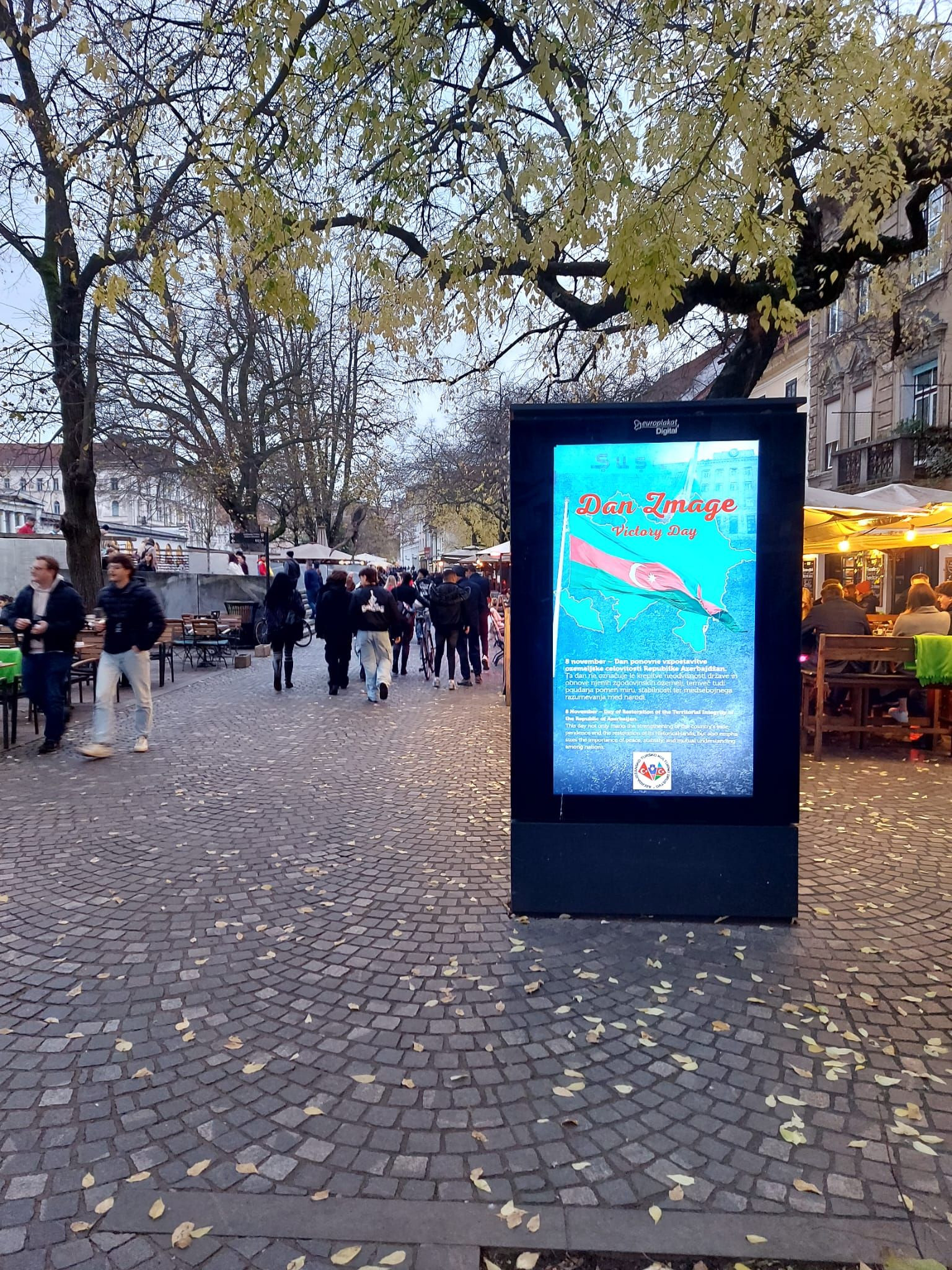 Sloveniyanın paytaxtı Lyublyana şəhərində Azərbaycanın Vətən müharibəsində qazandığı şanlı Zəfərin 5 illiyi münasibətilə şəhərin mərkəzində yerləşən rəqəmsal reklam lövhələrində sloven və ingilis dillərində məlumatlar nümayiş etdirilib.