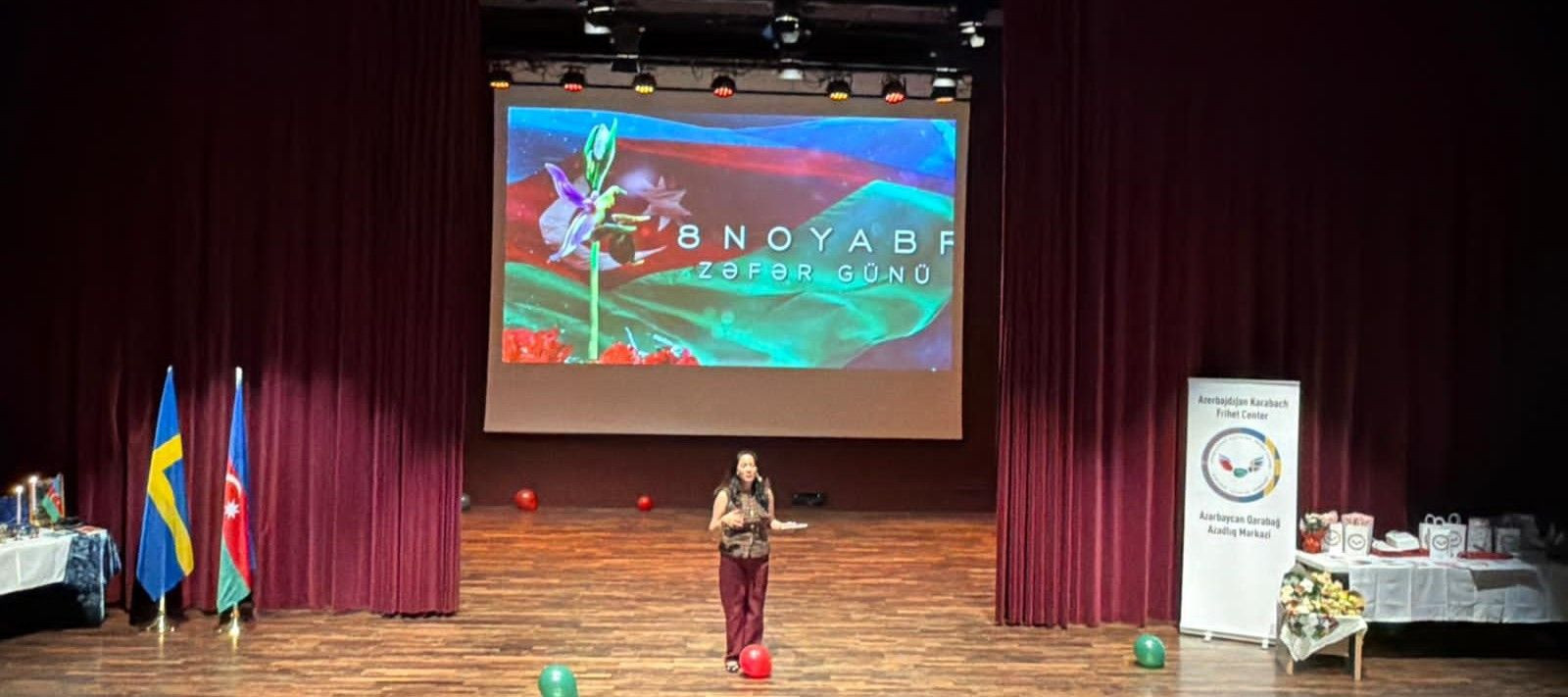 Crossmedia.az xəbər verir ki, İsveçdə yaşayan diaspor fəalları Gülnisə İbrahimova, Fəridə Talıblı və Məsumə Rüstəmlinin aparıcısı olduğu tədbirdə Azərbaycan Respublikasının Dövlət Himni səsləndirilib, şəhidlərimizin əziz xatirəsi bir dəqiqəlik sükutla yad edilib.