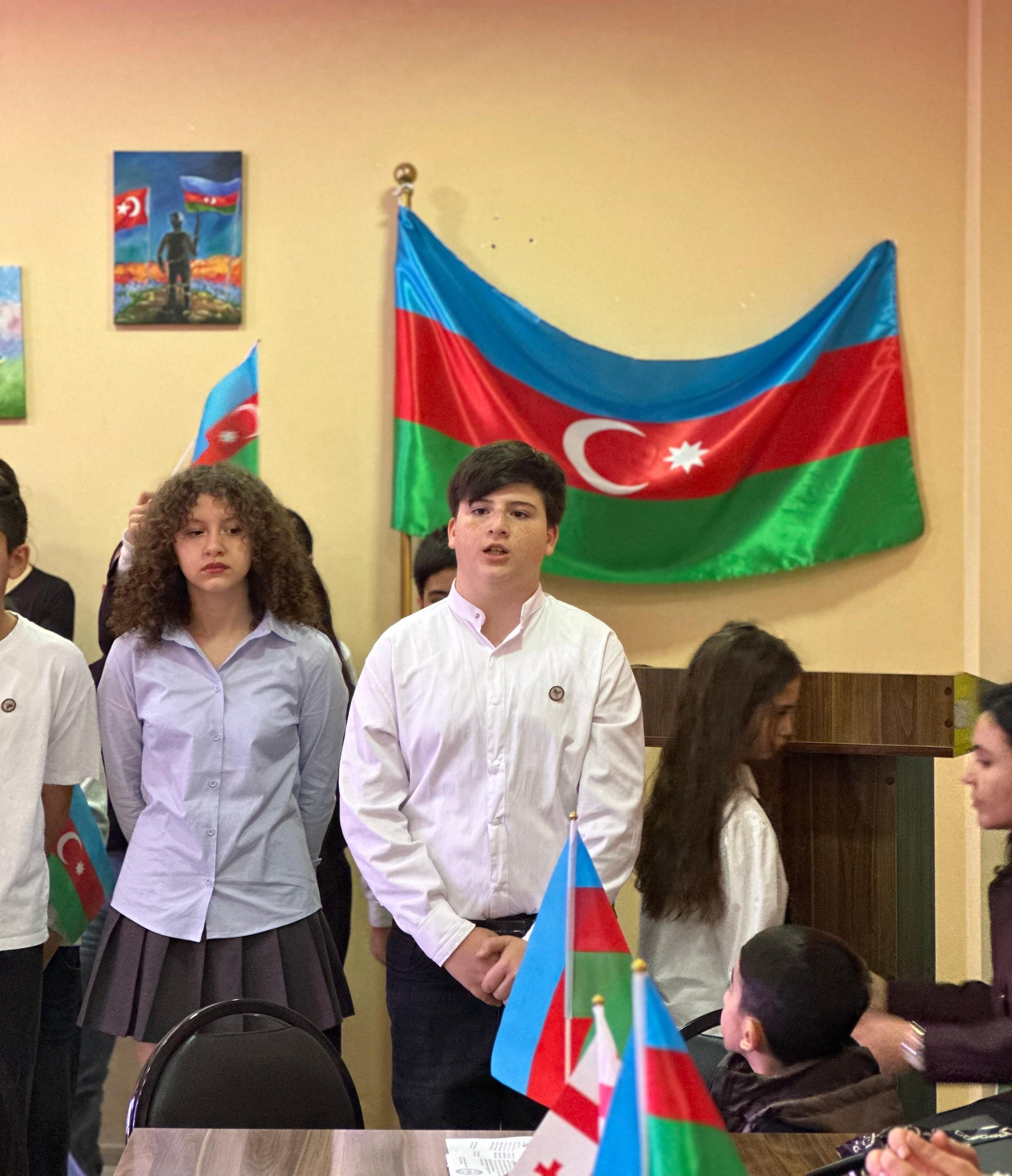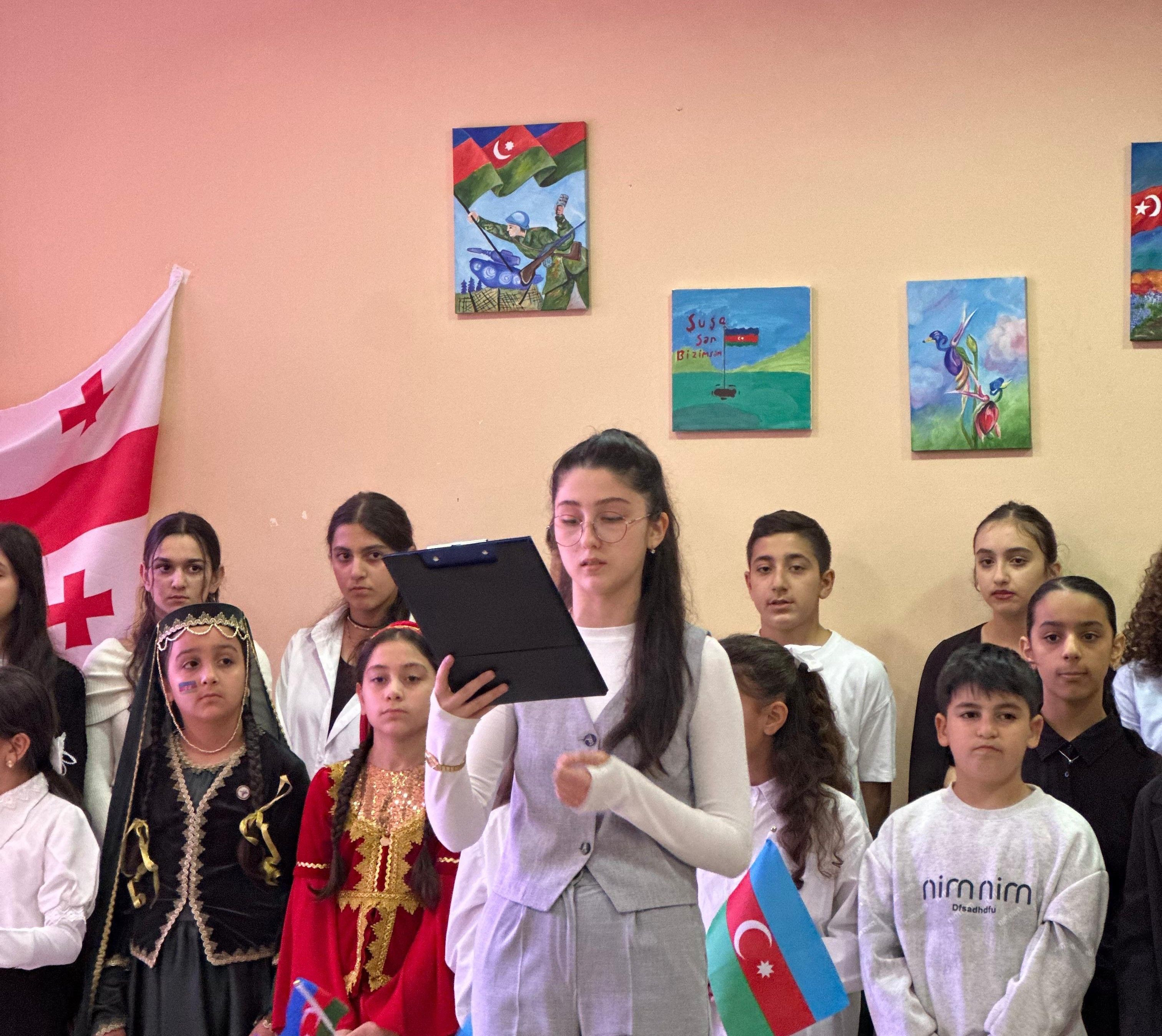 Şagirdlərin ədəbi-bədii kompozisiyası tədbirə xüsusi rəng qatıb. Azərbaycan Respublikasının Prezidenti İlham Əliyevə Qələbə münasibətilə ünvanlanan müraciət oxunduqdan sonra uşaqlar şəhidlərin xatirəsinə həsr olunan şeirlər söyləyib, mahnılar və rəqslər ifa ediblər.
