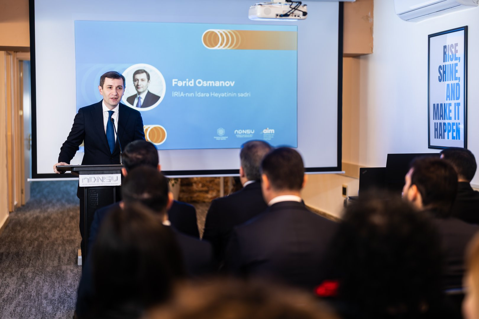 Salamlama nitqi ilə çıxış edən İRİA-nın İdarə Heyətinin sədri Fərid Osmanov qurumun dəstəyi ilə yaradılmış innovasiya mərkəzlərinin ölkədə startap mədəniyyətinin inkişafındakı rolunu vurğulayıb. F. Osmanov Mərkəzin məhz universitetin tərkibində mövcud olmasının bir sıra üstünlüklərinə diqqət çəkib: