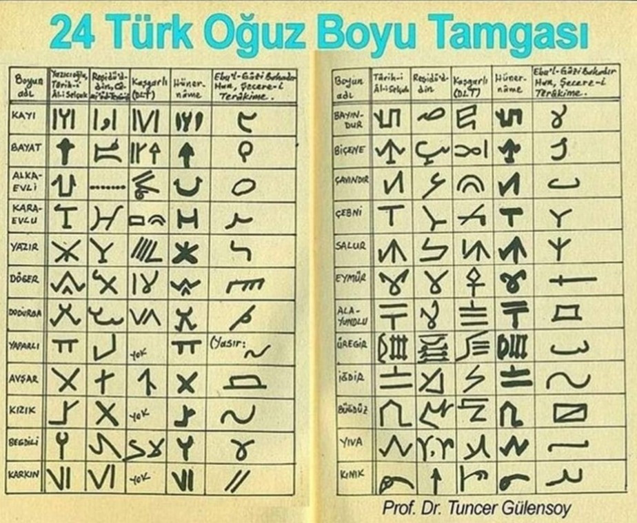 Göbəklitəpədə oğuzlarla bağlı diqqəti çəkən əlamətlətdən biri də oğuz tamğalarının burada olan sütunlarla və sütunlarda olan təsvirlərlə olan bənzərliyidir (şəkil 1. 2) Bunlara şərti “T” sütunları, çərkəz təsvirlərinin üst hissəsində olan təpələri (qabalığı) ifadə edən dalğavarı təsvirlər misal ola bilər. Belə ki, bu təsvirlərin elementləri çavuldur, karaevli və dodurğa boylarının tamğalarında daha aydın görünür.