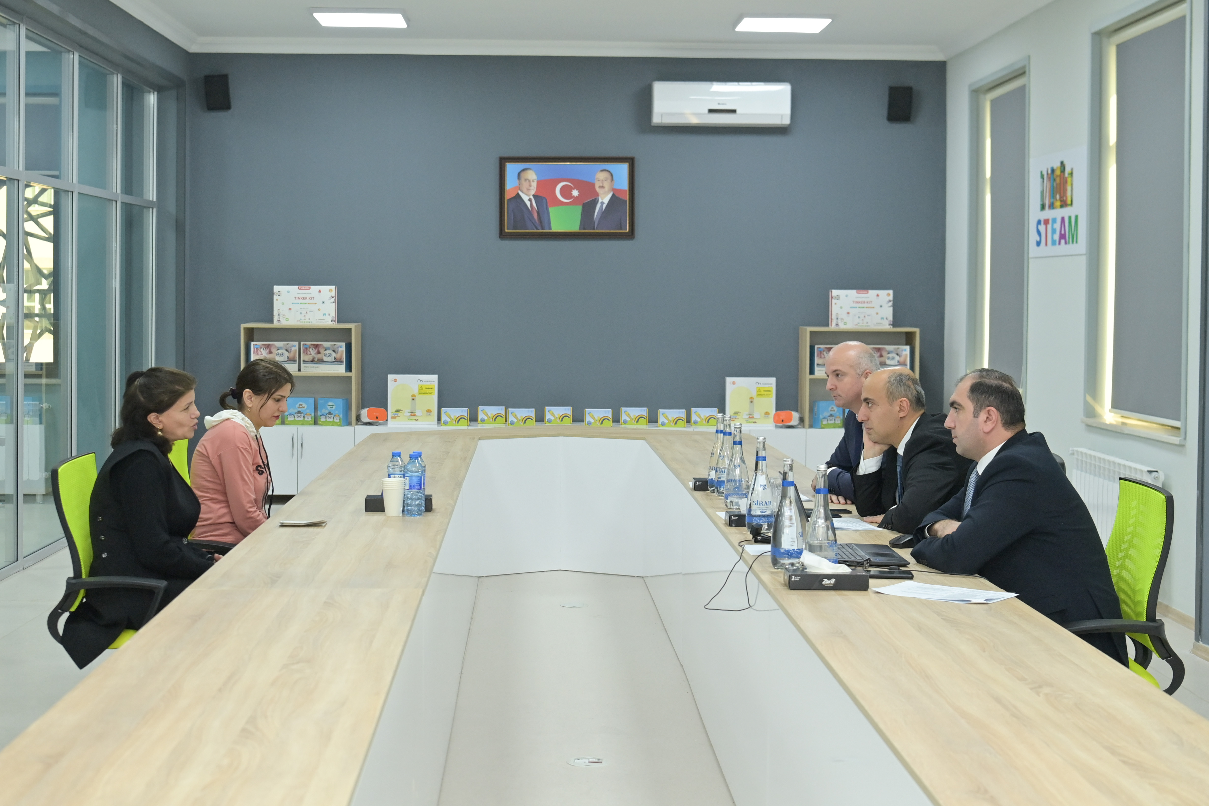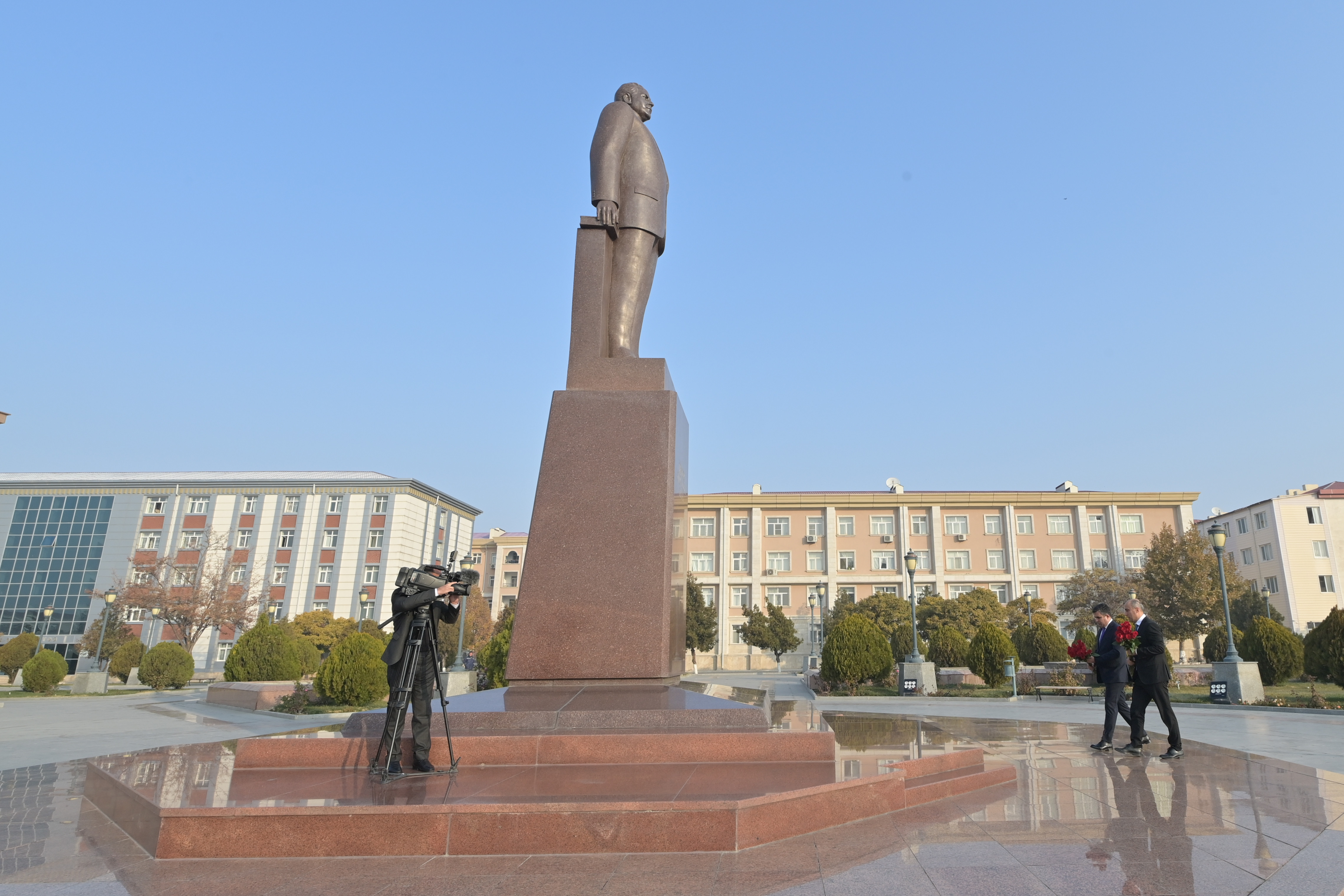 Qəbuldan əvvəl ulu öndər Heydər Əliyevin abidəsi ziyarət edilib, önünə gül dəstələri düzülüb.
