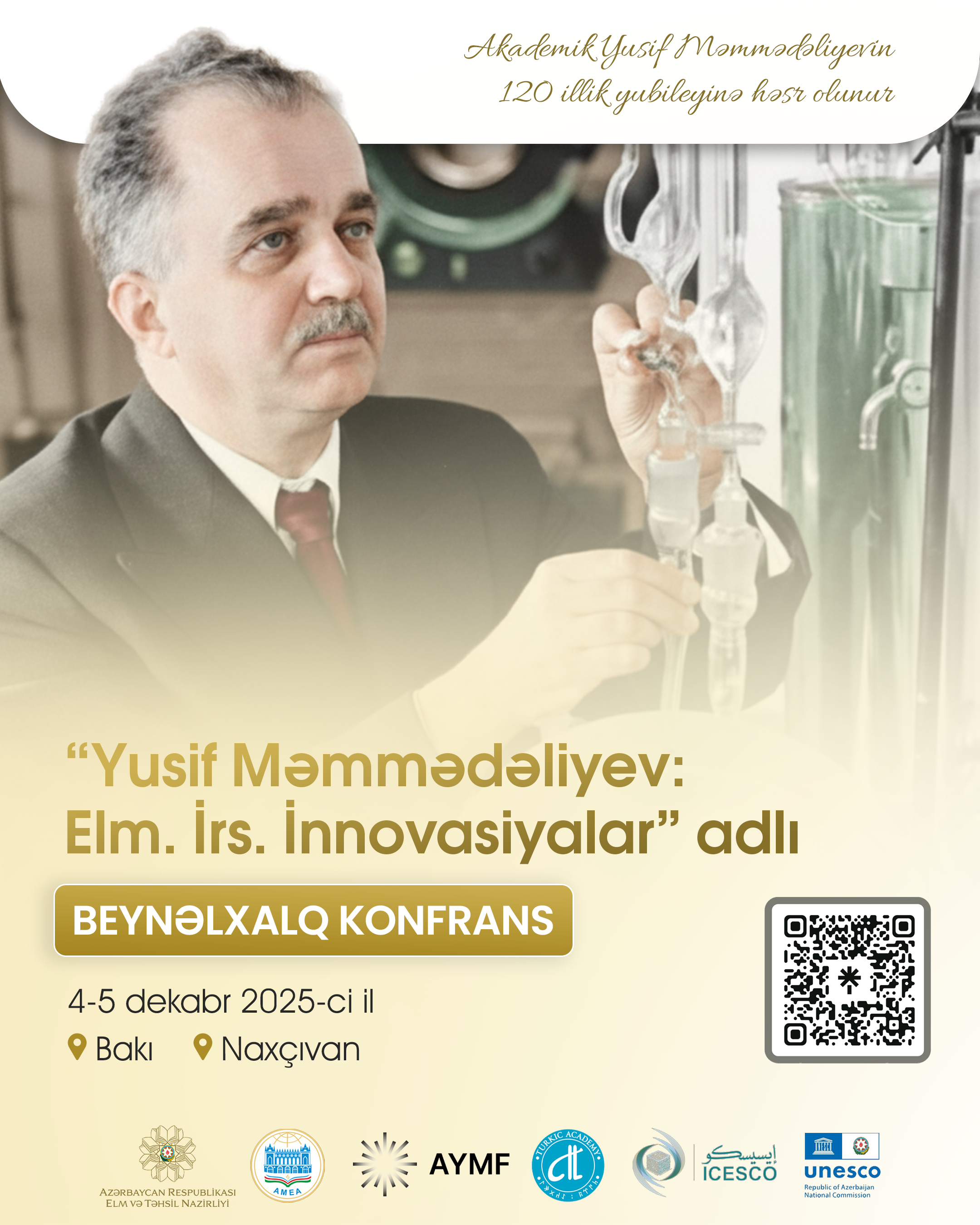 4–5 dekabr 2025-ci il tarixlərində akademik Yusif Məmmədəliyevin 120 illik yubileyinə həsr olunan “Yusif Məmmədəliyev: Elm. İrs. İnnovasiyalar” adlı beynəlxalq konfrans (https://aymconference.com/) keçiriləcək.