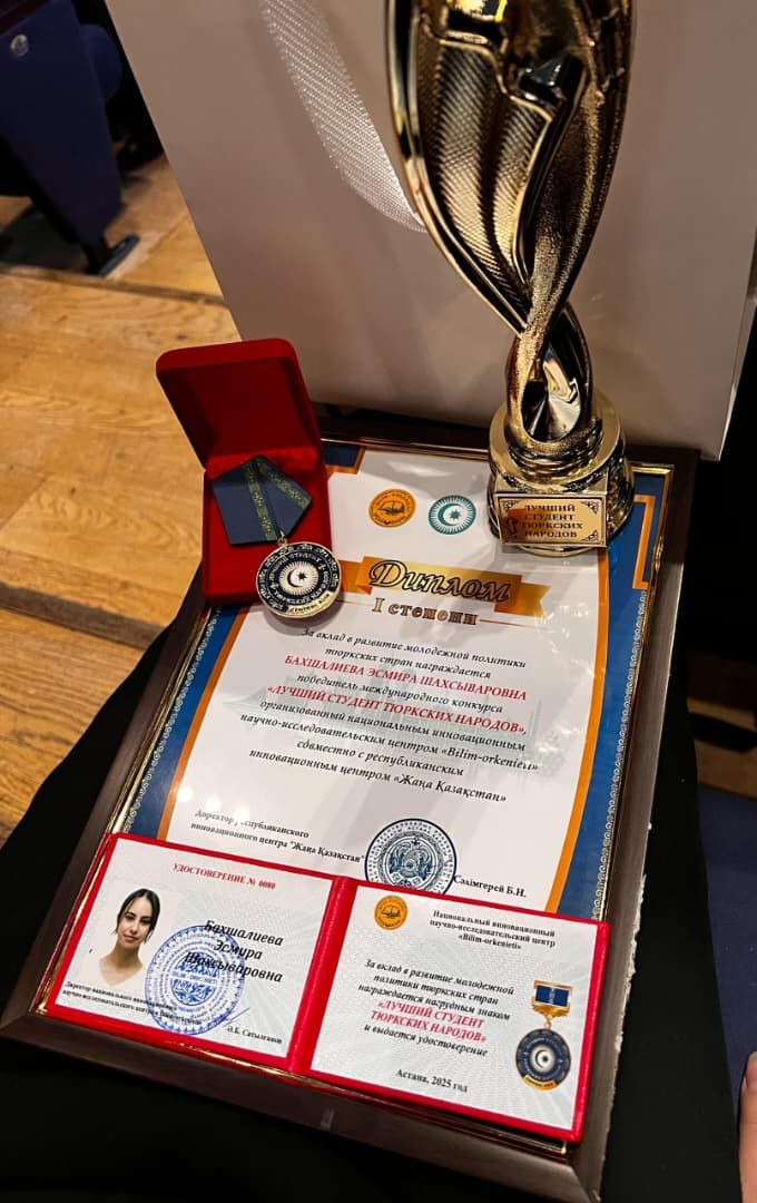 Bişkekdə fəaliyyət göstərən Qırğızıstan–Rus Slavyan Universitetinin Ümumi Tibb fakültəsinin 5-ci kurs tələbəsi Esmira Baxşəliyeva gənclər siyasətinin inkişafına verdiyi töhfələrinə görə “Türk Xalqlarının Ən Yaxşı Tələbəsi” Beynəlxalq Müsabiqəsinin qalibi olub.