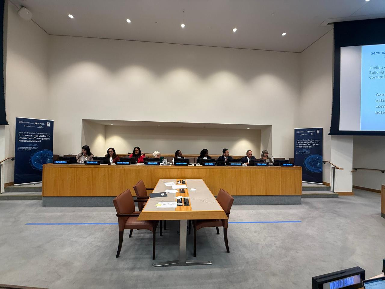 Belə ki, ABŞ-nin Nyu-York şəhərində hibrid formatda Birləşmiş Millətlər Təşkilatının Baş Assambleyasının Korrupsiyanın qarşısının alınması, onunla mübarizə və beynəlxalq əməkdaşlığın gücləndirilməsinə həsr olunmuş xüsusi sessiyasında Azərbaycan rəsmisi "Korrupsiyaya qarşı mübarizə strategiyalarının gücləndirilməsi məqsədilə "Növbəti Nəsil Korrupsiya Analitikası üçün dəqiq Statistikanın forrmalaşdırılması" mövzusuna həsr edilmiş sessiyada çıxış edib.