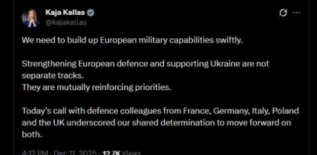 Crossmedia.az xəbər verir ki, bunu Avropa İttifaqının (Aİ) xarici işlər və təhlükəsizlik siyasəti üzrə ali nümayəndəsi Kaya Kallas "X"də yazıb.