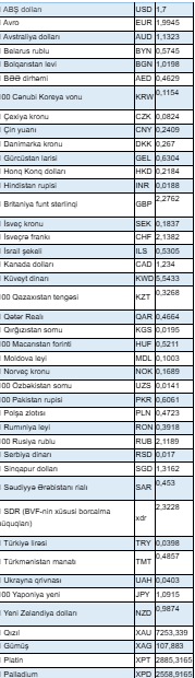 Azərbaycan Mərkəzi Bankı bu günün valyuta məzənnələrini açıqlayıb.
