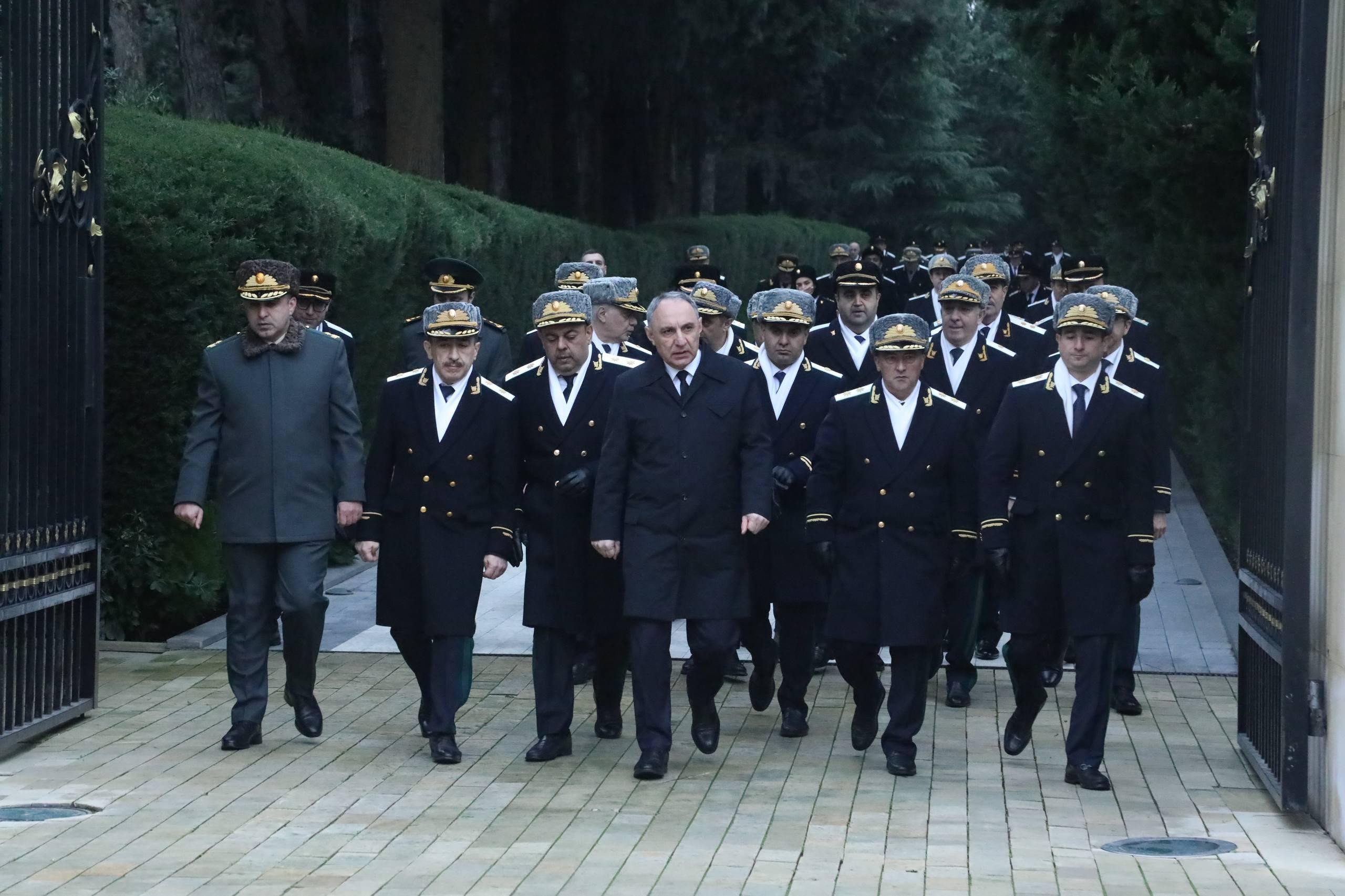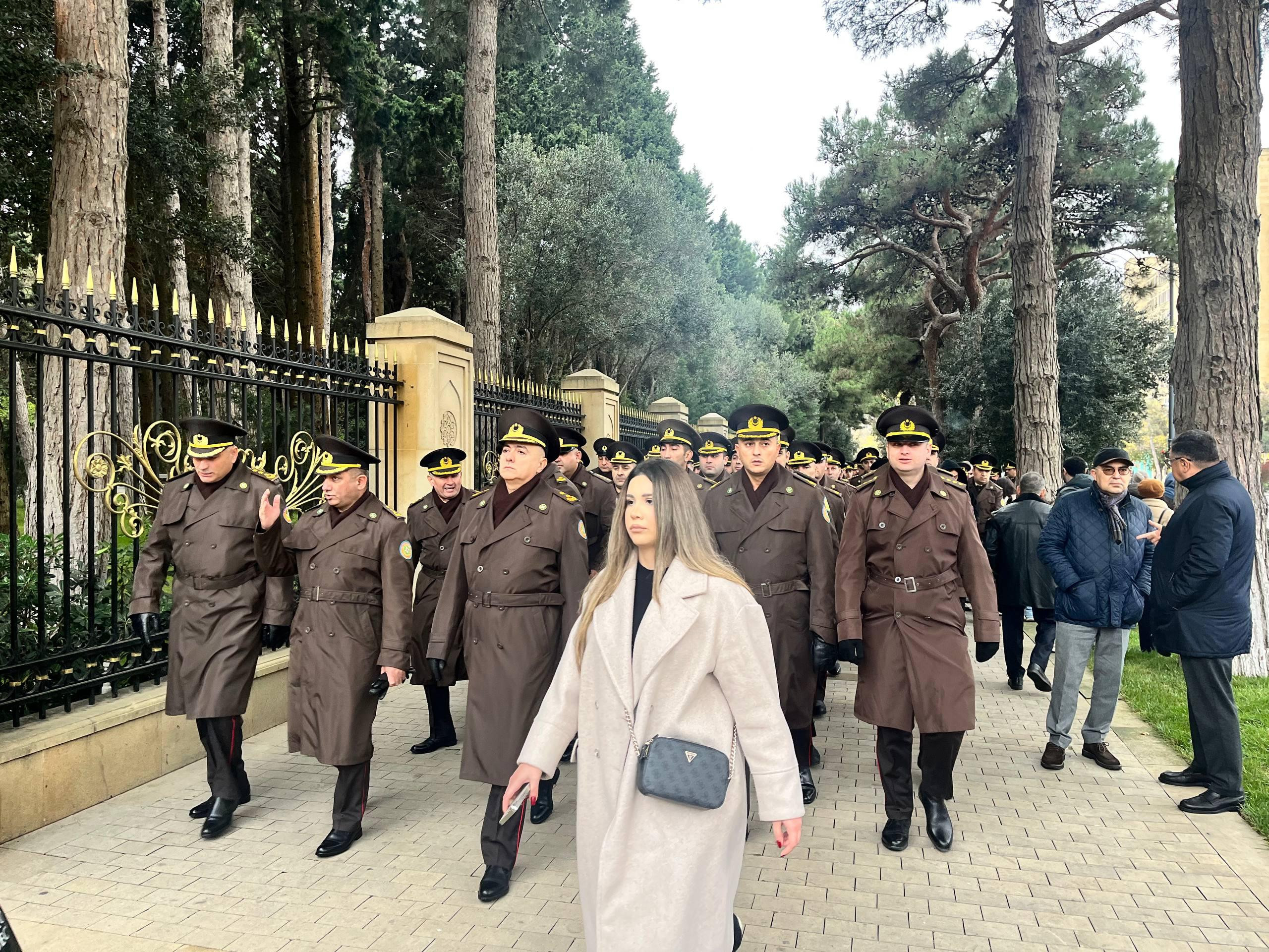 Dövlət rəsmilərindən baş prokuror Kamran Əliyevi görürəm. O və rəhbərlik etdiyi heyət Ulu Öndərin məzarı önünə gül dəstələri qoyurlar.