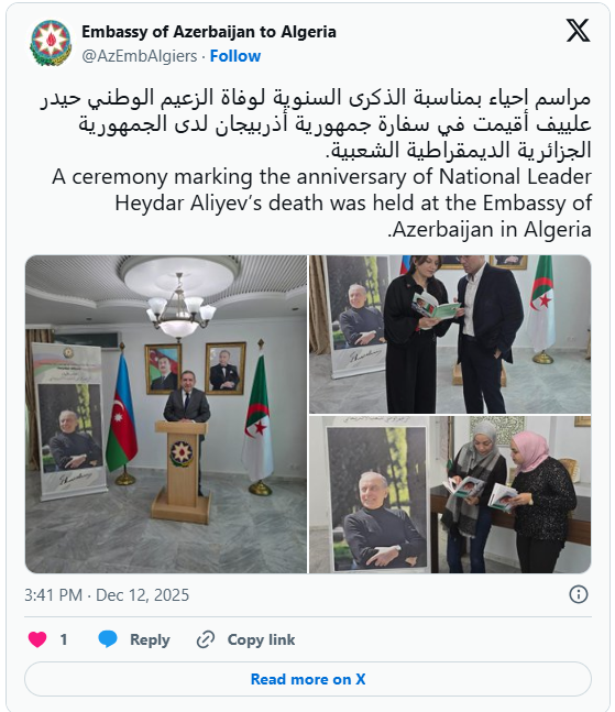 Crossmedia.az xəbər verir ki, bu barədə Azərbaycanın Əlcəzairdəki səfirliyi məlumat yayıb.