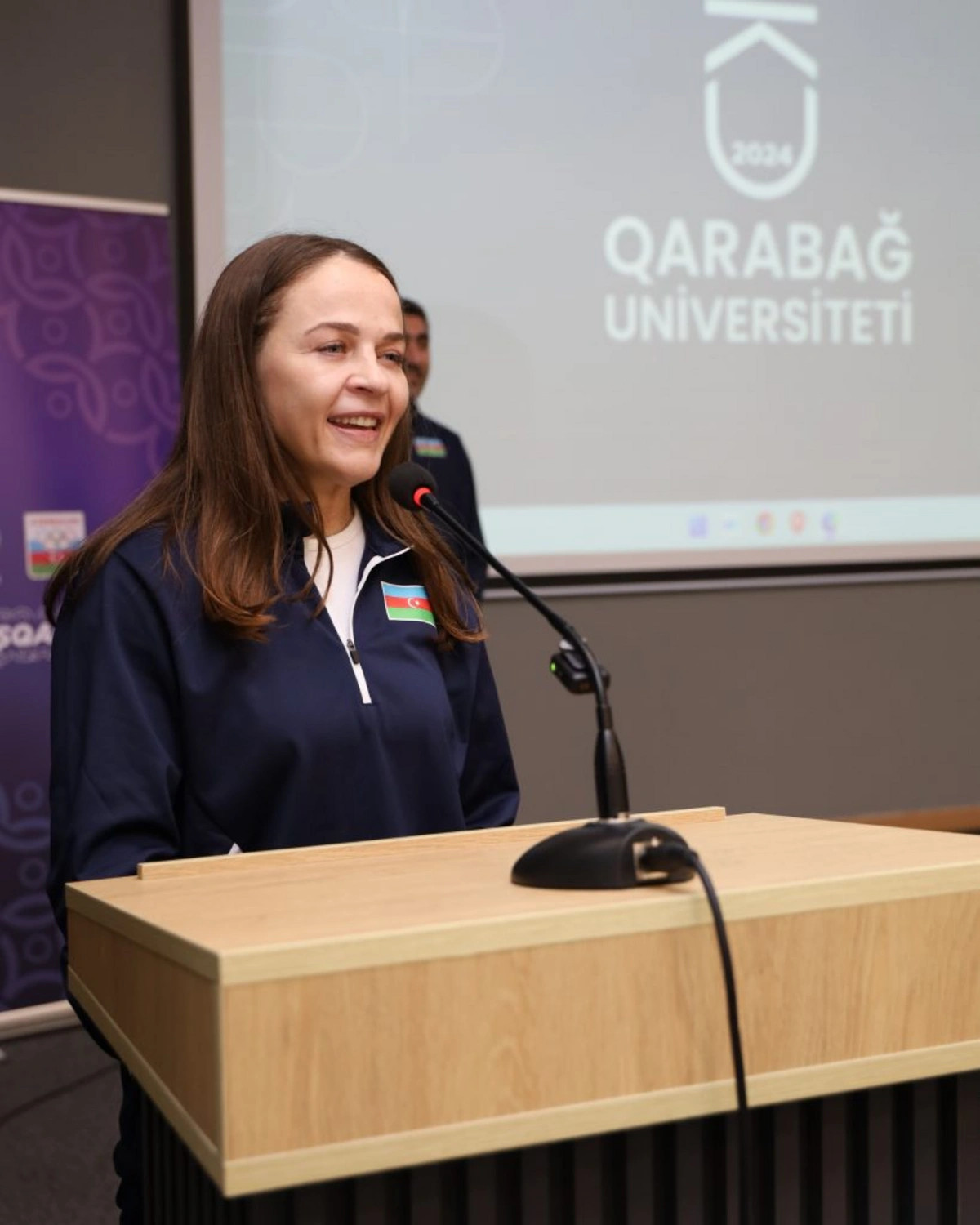 Crossmedia.az xəbər verir ki, Gənclər və İdman Nazirliyinin və Milli Olimpiya Komitəsinin dəstəyilə təşkil edilən tədbir ali təhsil ocağının akt zalında baş tutub.