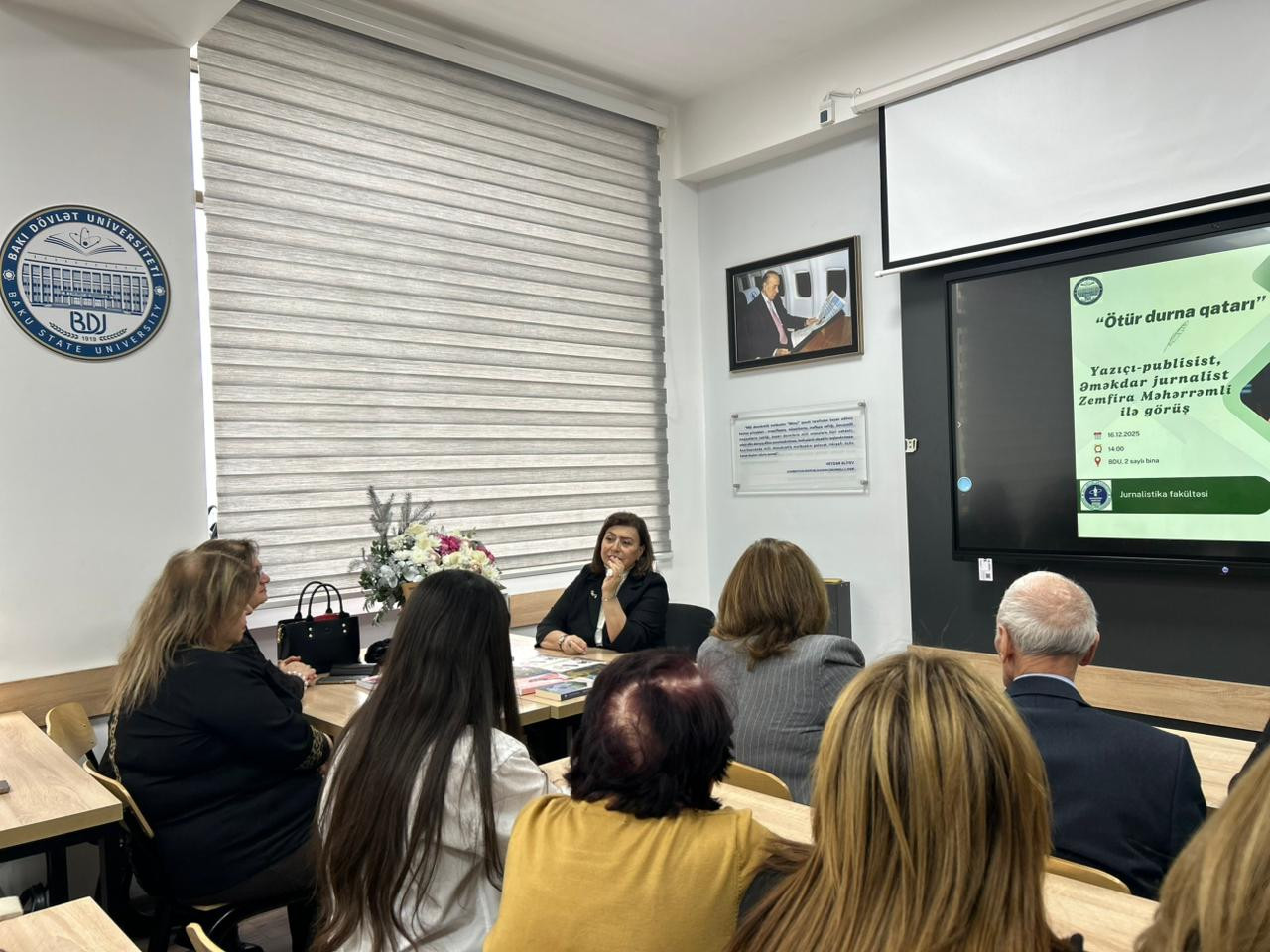 Yazıçı-publisist, əməkdar jurnalist Zemfira Məhərrəmlinin 70 illiyi münasibətilə “Ötür durna qatarı” mövzusunda görüş keçirilib. Əməkdar jurnalist Zemfira Məhərrəmli tələblər ilə görüş zamanı universitet və tələbəlik illəri ilə bağlı xatirələrini bölüşüb. O, tanınmış jurnalistlərdən dərs aldığını qeyd edib, tələbələrə məsləhətlər verib, jurnalist peşəsinin üstünlüklərindən danışıb və I Qarabağ müharibəsi ilə bağlı xatirələrini paylaşıb.
