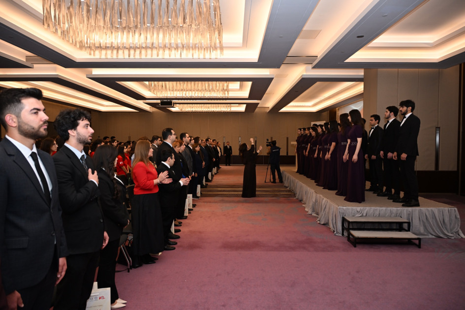 Tədbir Azərbaycan Milli Konservatoriyasının tələbələrindən ibarət xor kollektivinin ifasında Dövlət Himninin səsləndirilməsi ilə başlanılıb.