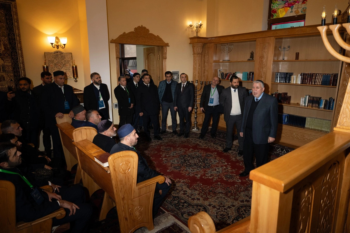 Daha sonra din xadimləri Dağ yəhudiləri sinaqoquna baş çəkib. Bildirilib ki, yəhudilər Azərbaycanda uzun illərdir sülh və tolerantlıq şəraitində yaşayırlar və ölkədə birgə yaşayış üçün bütün şərait mövcuddur.
