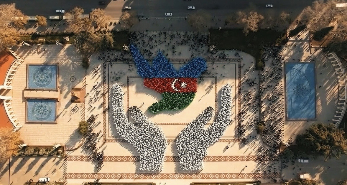 məqsədilə tələbə gənclərdən ibarət “Dəmir yumruq və Sülh göyərçini” kompozisiyası yaradılıb.(AZƏRTAC)