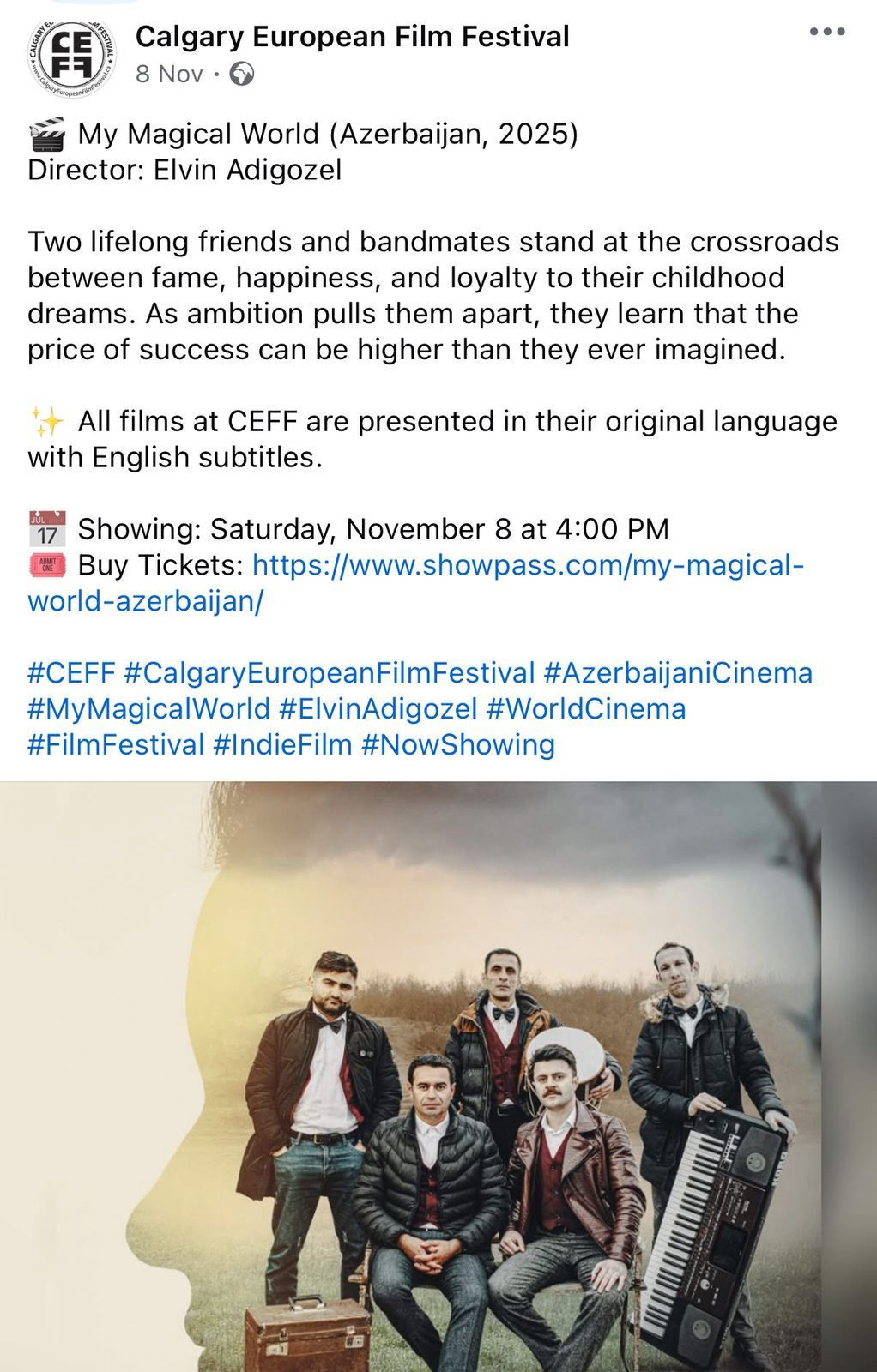 Kanadada keçirilən Kalqari Avropa Film Festivalında rejissor Elvin Adıgözəlin ssenari müəllifi olduğu "Mənim sehrli dünyam" tammetrajlı Azərbaycan bədii filmi nümayiş olunub.