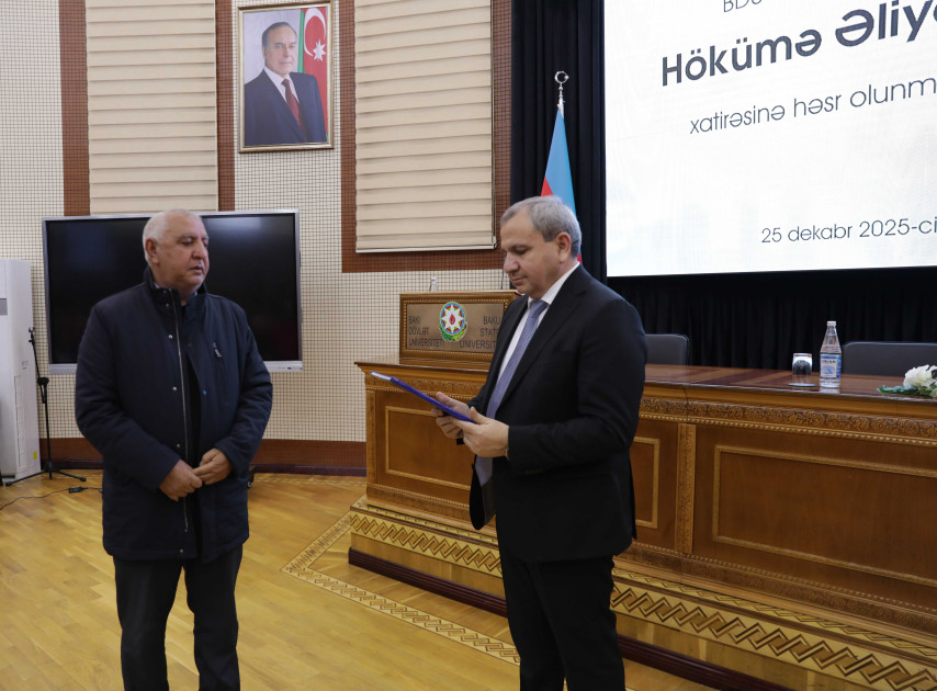 Sonda rektor Elçin Babayev Hökumə Əliyevanın BDU-da təhsil aldığı müddətdə ona məxsus olan sənədi şəhid məzunun valideyni Cəlil Əliyevə təqdim edib.
