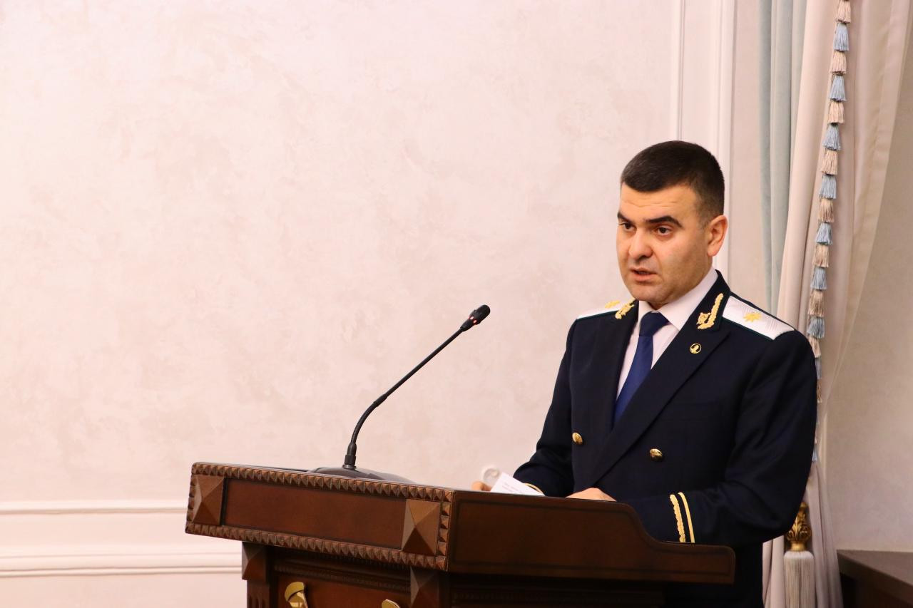 Prokurorluq orqanlarının fəaliyyətinə toxunarkən Kamran Əliyev tərəfindən Azərbaycanda bərqərar olmuş ictimai-siyasi sabitliyin qorunması, cinayətkarlığa qarşı mübarizənin gücləndirilməsi və insan hüquq və azadlıqlarının müdafiəsi sahəsində Azərbaycan prokurorluğunun rolu qeyd edilməklə, prokurorluğun əsas fəaliyyət istiqamətləri üzrə görülən işlər və statistik göstəricilər kollegiya üzvlərinin diqqətinə çatdırılıb, ümumən qeydə alınmış cinayətlərin sayında azalmanın müşahidə edildiyi, bu nailiyyətlərin əldə olunmasında digər hüquq mühafizə orqanları ilə əlaqəli şəkildə həyata keçirilən preventiv, operativ və istintaq tədbirlərinin effektivliyi vurğulanıb.