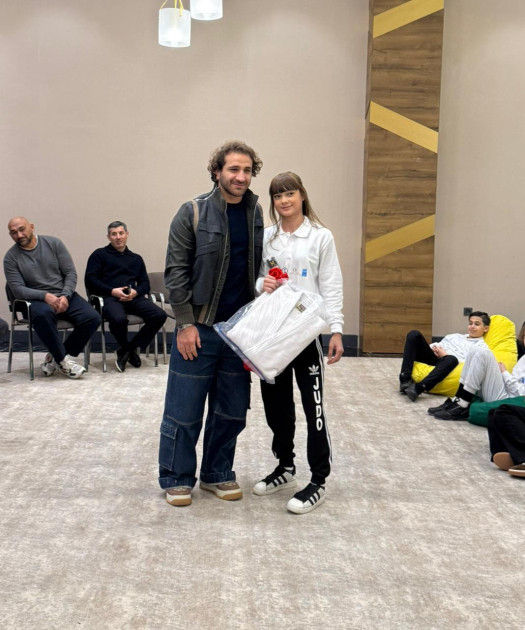Görüş çərçivəsində düşərgə iştirakçısı olan yeniyetmə cüdoçu, Vətən Müharibəsi Qəhrəmanı, şəhid XTQ baş giziri Mehrab Niftəliyevin qızı, respublika çempionatının və Sumqayıt şəhər birinciliyinin qalibi Ləman Niftəliyevaya çempion cüdoçular tərəfindən kimono hədiyyə olunub.
