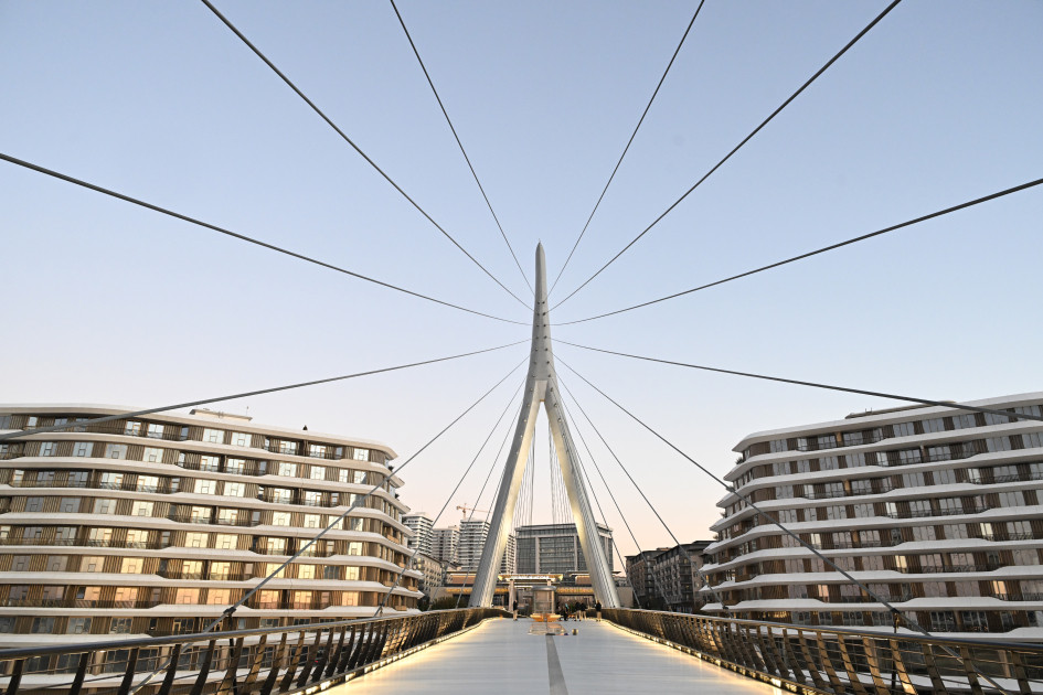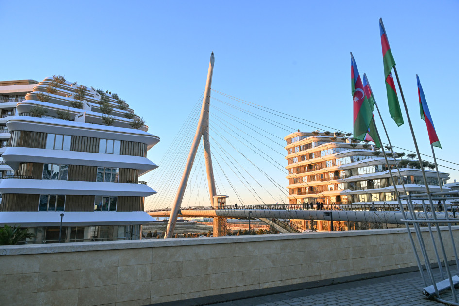 Dövlətimizin başçısı, birinci xanım və qızları “Bakı Ağ Şəhər”də Zaman meydanı və buradakı piyada körpüsünün açılışında da iştirak etdilər.