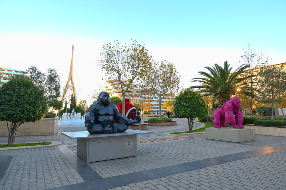 Prezident İlham Əliyev, birinci xanım Mehriban Əliyeva və qızları əvvəlcə “Qarabağ atları” heykəltaraşlıq kompleksi ilə tanış oldular. Vətən müharibəsindəki Qələbəmizə həsr edilmiş və milli irsimizin rəmzi olan bu kompleks “Qarabağ atları” meydanında ucaldılıb. Kompleksdə "Soltan", "Ürək", "Sereyin", "Aypara", "Şöhrət", "Ötqəm" və "İldırım" adlı ümumilikdə 7 Qarabağ atının heykəli var.