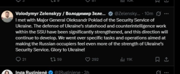 Crossmedia.az xəbər verir ki, bu barədə Ukrayna Prezidenti Volodimir Zelenski Ukrayna Təhlükəsizlik Xidmətinin general-mayoru Aleksandr Pokladla görüşü ilə bağlı özünün "X" hesabında yazıb.