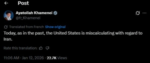 Crossmedia.az xəbər verir ki, bu barədə İranın ali dini lideri İranın ali lideri Ayətullah Əli Xameneyi "X"də yazıb.
