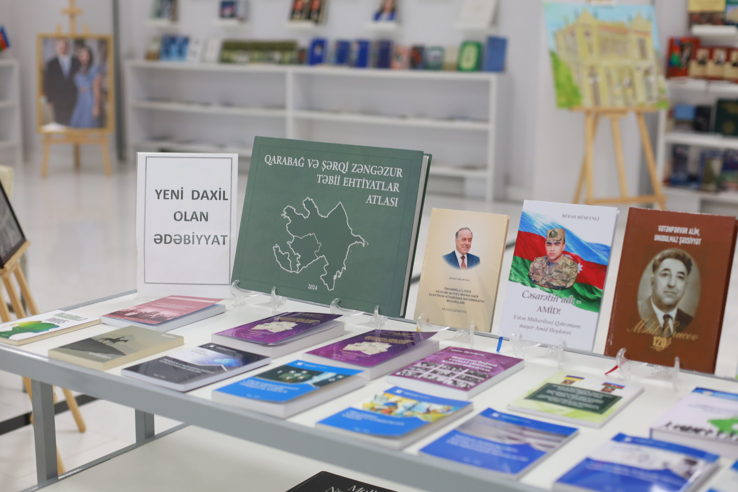 Bundan başqa, Bakı Dövlət Universitetinin İnformasiya və sənəd menecmenti fakültəsinin Kitabxana-informasiya resurslarının idarə edilməsi kafedrasının müdiri, dosent Sevda Xələfovanın Ümummilli Lider Heydər Əliyevin irsinə həsr olunmuş “Ümummilli Lider Heydər Əliyevin irsinə dair elektron kitabxana-informasiya resursları” monoqrafiyası, eləcə də işğaldan azad edilmiş regionların təbii sərvətlərini, geoloji vəziyyətini, ekoloji sistemini, torpaq və su ehtiyatlarını, biomüxtəlifliyini əks etdirən fundamental elmi-kartoqrafik əsər olan “Qarabağ və Şərqi Zəngəzur təbii ehtiyatlar atlası” adlı nəfis nəşr sərgidə xüsusi yer alıb.
