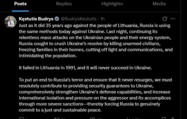 Crossmedia.az xəbər verir ki, bunu Litvanın xarici işlər naziri Kyastutus Budris "X"də yazıb.