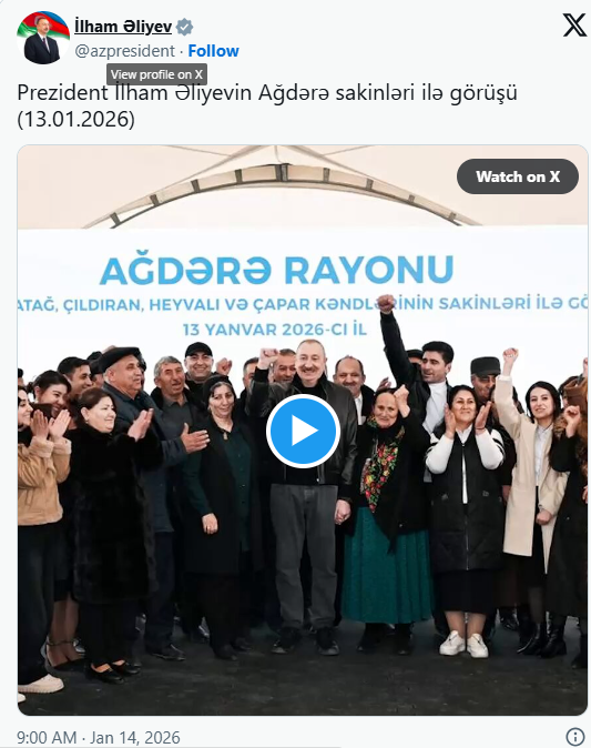 İlham Əliyev Ağdərə sakinləri ilə görüşündən paylaşım edib