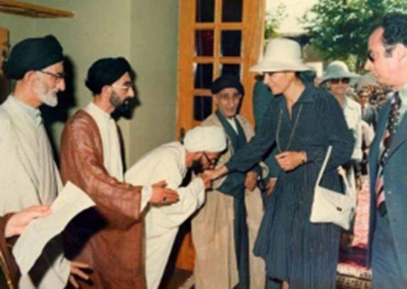 (Fərəh Pəhləvinin əlindən öpən ayətullah Ə.Xamineyidir)