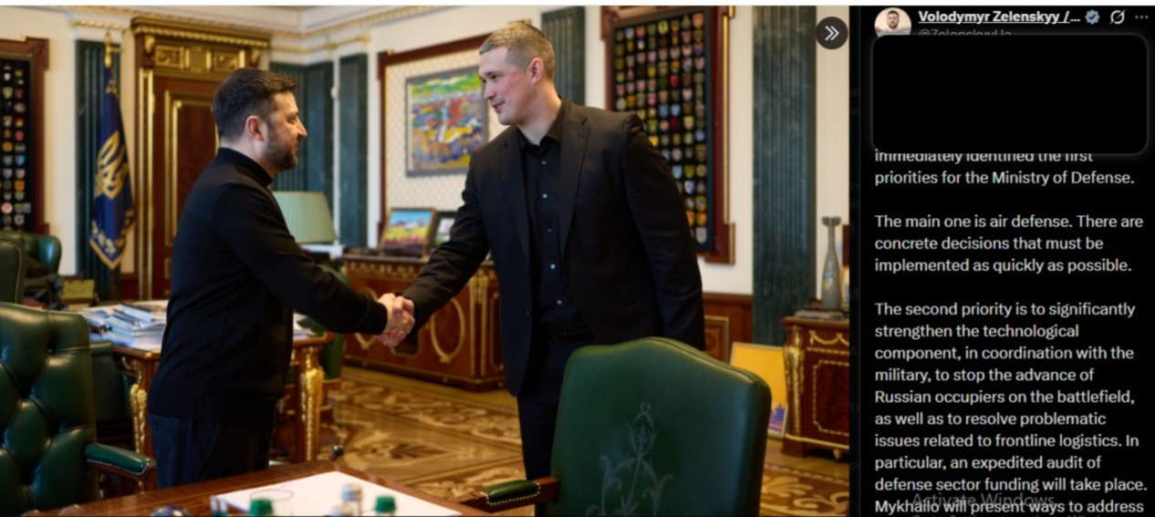 O qeyd edib ki, ikinci prioritet rus işğalçılarının döyüş meydanında irəliləməsinin qarşısını almaq, eləcə də cəbhə xəttinin logistikası ilə bağlı problemli məsələləri həll etmək üçün ordu ilə əlaqələndirilmiş şəkildə texnoloji komponenti əhəmiyyətli dərəcədə gücləndirməkdir: "Xüsusilə, müdafiə sektorunun maliyyələşdirilməsinin sürətləndirilmiş auditi keçiriləcək. Mixaylo mövcud çatışmazlıqların aradan qaldırılması yollarını təqdim edəcək. Cəbhə xəttindəki döyüşçülərimizin əmək haqqının artırılması ilə bağlı qərarlar da hazırlanır. Biz həmçinin dron təchizatı ilə bağlı ayrıca işləyirik - Ukrayna Müdafiə Nazirliyi döyüş briqadaları üçün dron təminatının əsas səviyyəsini tətbiq etməli və düşmənə daha dərindən zərbə endirə bilən ixtisaslaşmış dronların alınmasını təmin etməlidir".