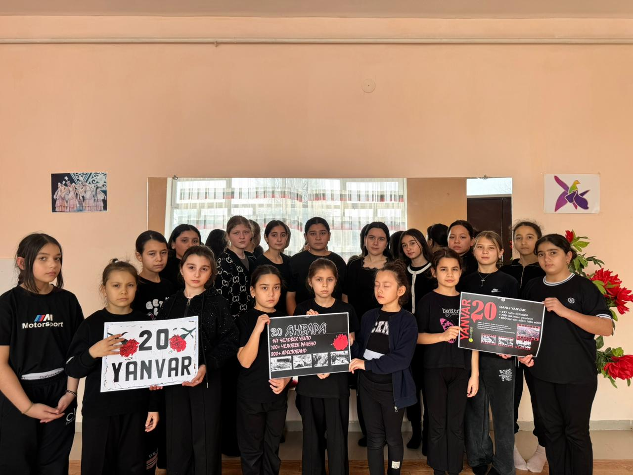Şagirdlər 20 Yanvar faciəsinə həsr olunan şeirlər səsləndirərək şəhidlərin əziz xatirəsini ehtiramla yad ediblər.