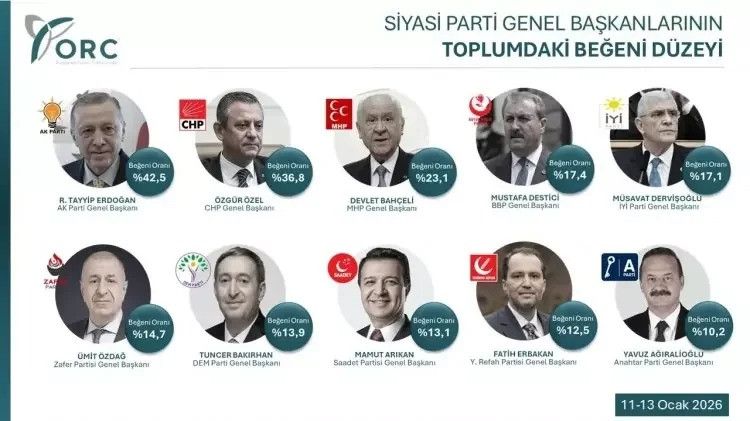 Anketin nəticələrinə görə, 10 siyasətçidən ibarət siyahıda birinci yeri 42,5 faiz səslə Türkiyə prezidenti Rəcəb Tayyib Ərdoğan tutur. İkinci yerdə isə 36,8 faiz səslə CHP sədri Özgür Özeldir. Siyahıda üçüncü yerdə, 23,1 faiz səslə Milliyyətçi Hərəkat Partiyasının (MHP) sədri Dövlət Baxçalıdır.