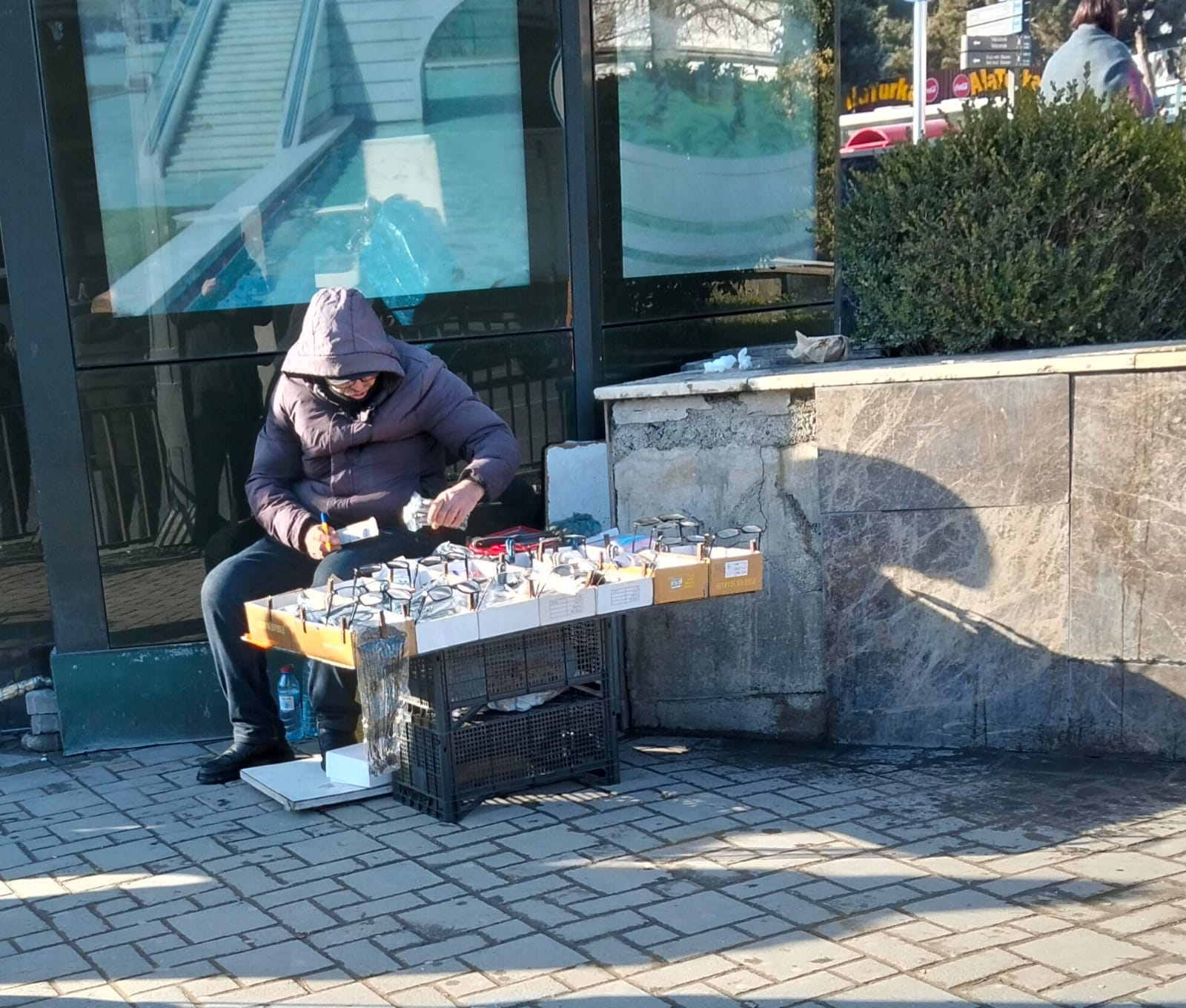 Bir az irəlidə diqqətimi çəkən nüans səyyar satıcının eynək satması oldu. Maraqla yaxınlaşdım: