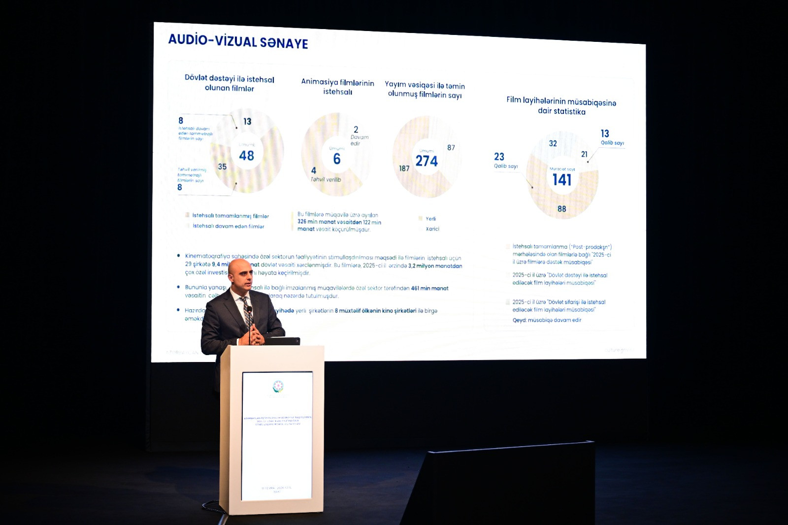 Çıxışlar müvafiq sahələr üzrə fəaliyyətin nəticələrini əks etdirən slayd-təqdimatla müşayiət olunub
