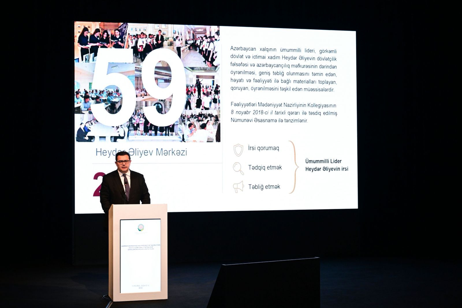 Mədəniyyət naziri Adil Kərimli çıxış edərək ötən il ərzində nazirliyin fəaliyyəti haqqında, həyata keçirilən islahatlar, reallaşdırılan layihələr barədə ətraflı məlumat verib.