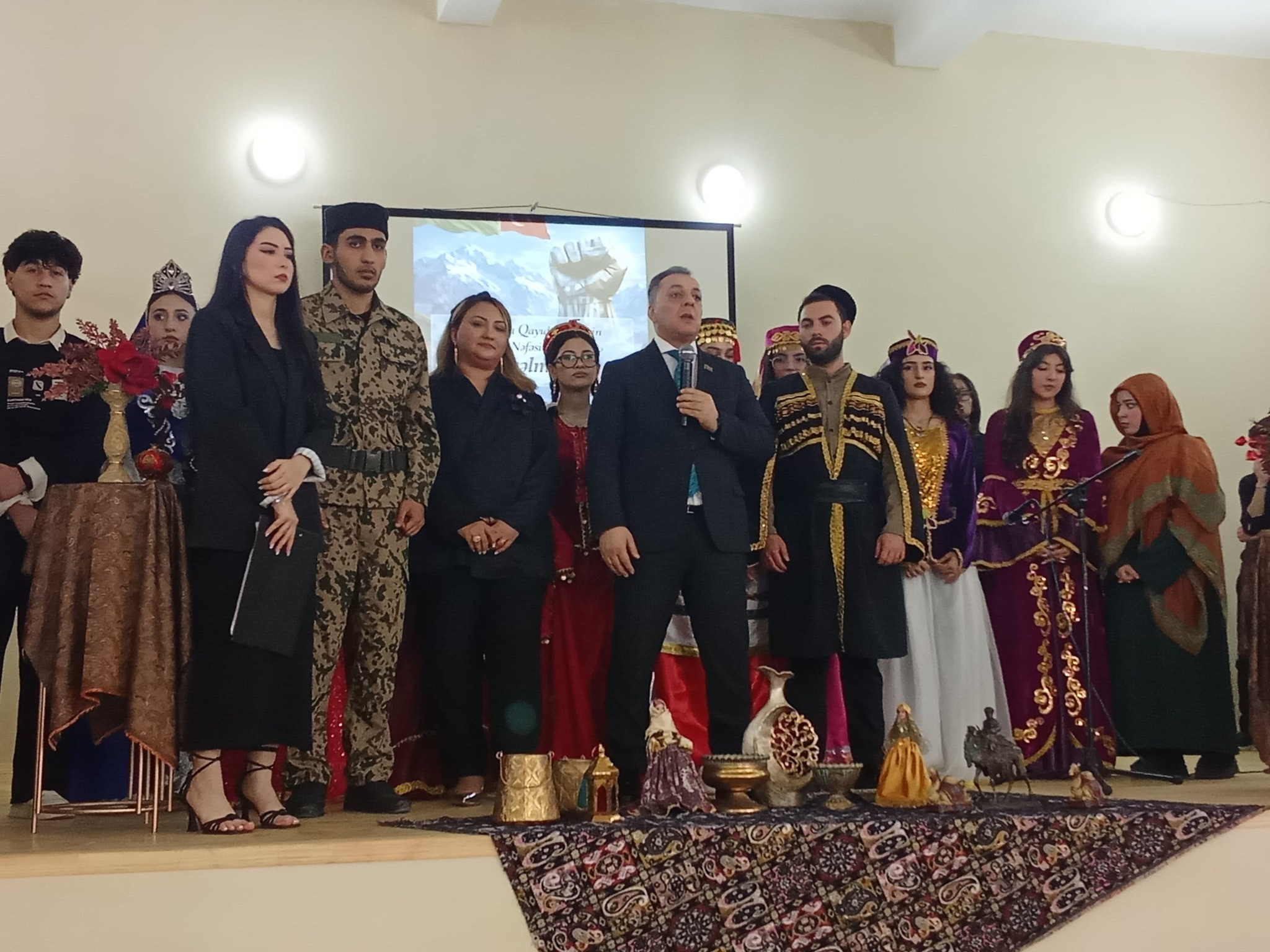 Sonra səhnə kompozisiyaları vasitəsilə Qarabağın tarixi, işğal və zəfər yolu, eləcə də mədəni dəyərləri bədii formada təqdim olundu. Tələbələrin ifasında vətənpərvərlik ruhlu şeirlər, musiqi nömrələri və ədəbi səhnəciklər tədbirə xüsusi rəng qatdı.