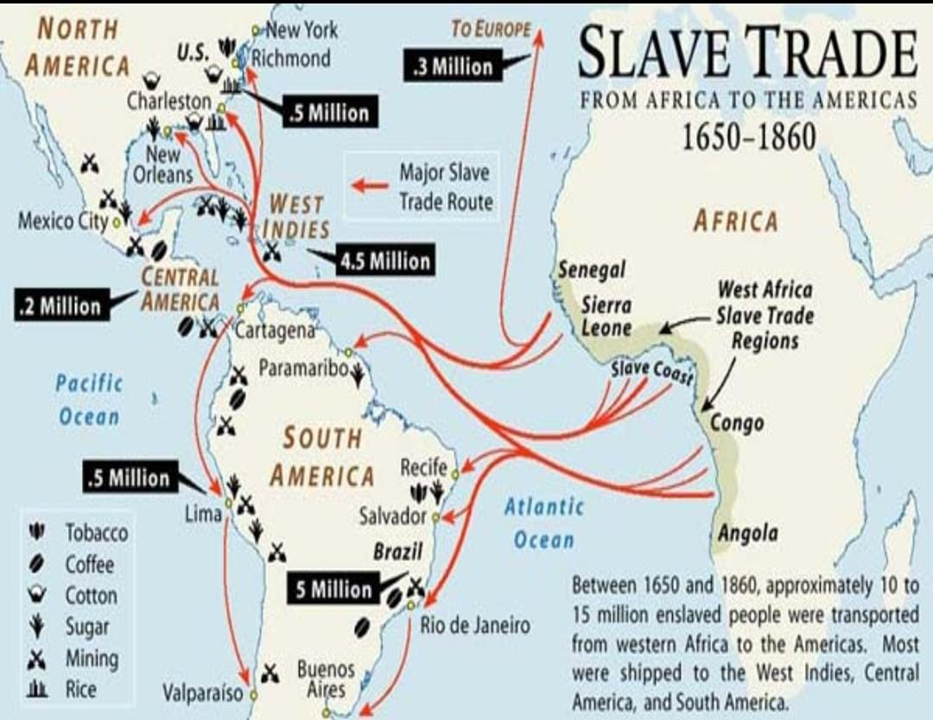 Karib hövzəsində Fransa 1625-ci ildə Sent-Kristofer adasını, 1664-cü ildə Sent-Dominq (Haiti) koloniyasını qurub. Burada şəkər plantasiyaları qurulub və Afrika qullarının idxalı genişlənib. XVII–XVIII əsrlər ərzində çoxsaylı afrikalı qul olaraq daşınıb, ağır şəraitdə işlədilib və yerli Karib xalqları ciddi demoqrafik itkilərlə üzləşib. Bu siyasət iqtisadi istismarın klassik nümunəsidir: yerli əhali zəifləyir, qullar gətirilir və məhsullar metropoliyaya aparılırdı.